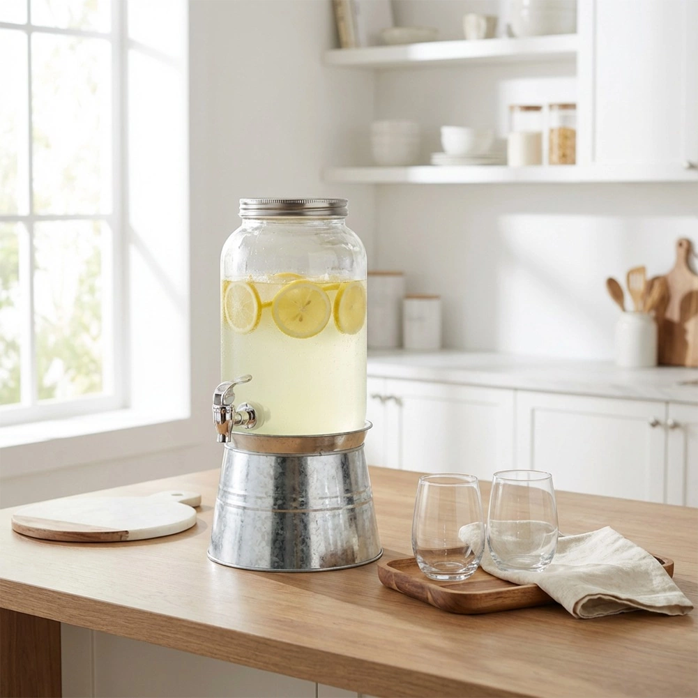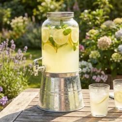 De dispenser is gemaakt van hoogwaardig, dikwandig glas met een glad oppervlak; de kraan maakt soepel en schoon schenken mogelijk. Perfect voor tuinfeesten, barbecues, familiefeestjes en ook voor cafés en bars, waar je stijlvol limonades, ijsthee of fruitwater presenteert.