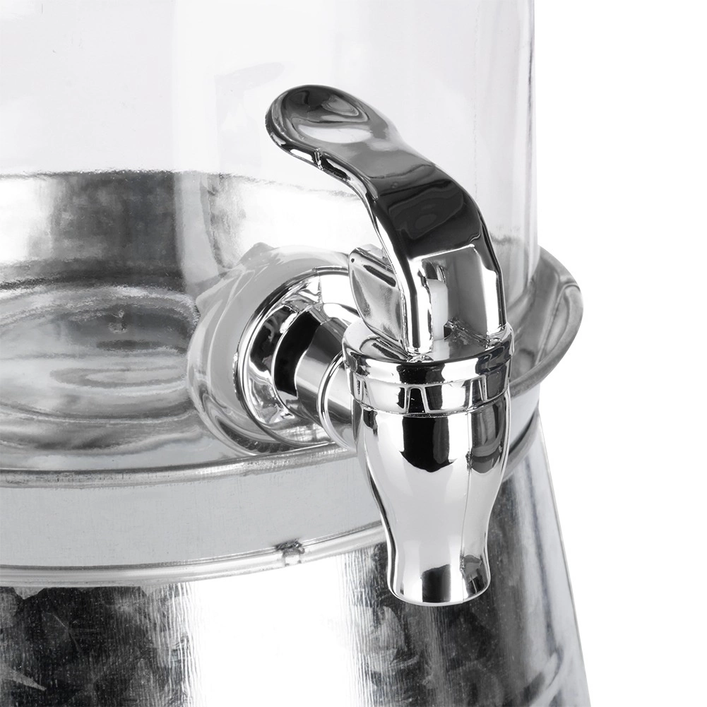 De gegalvaniseerde metalen standaard brengt het reservoir op de ideale hoogte, zodat je het glas eenvoudig onder het kraantje plaatst en het inschenken schoon en druppelvrij verloopt.
