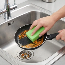 De speciale granietlaag minimaliseert aanbakken, zodat een paar druppels olie volstaan. Het eten komt gemakkelijk los en de pan is snel schoon te maken.
