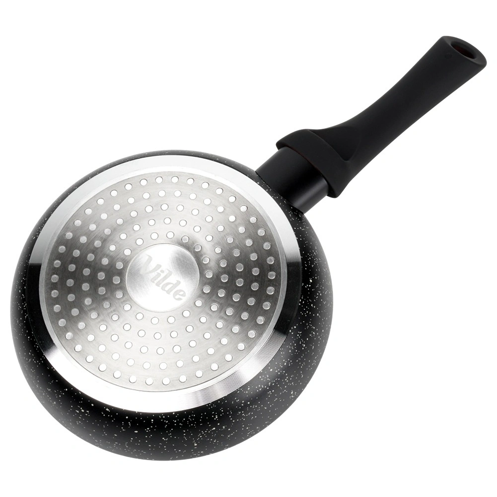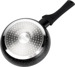 Deze stijlvolle pan met granieten anti-aanbaklaag is ideaal voor het bakken van eieren, groenten en vlees met een minimum aan vet. Het aluminium lichaam zorgt voor een snelle warmteoverdracht en energiezuinig koken, terwijl het moderne zwarte design perfect in elke keuken past.