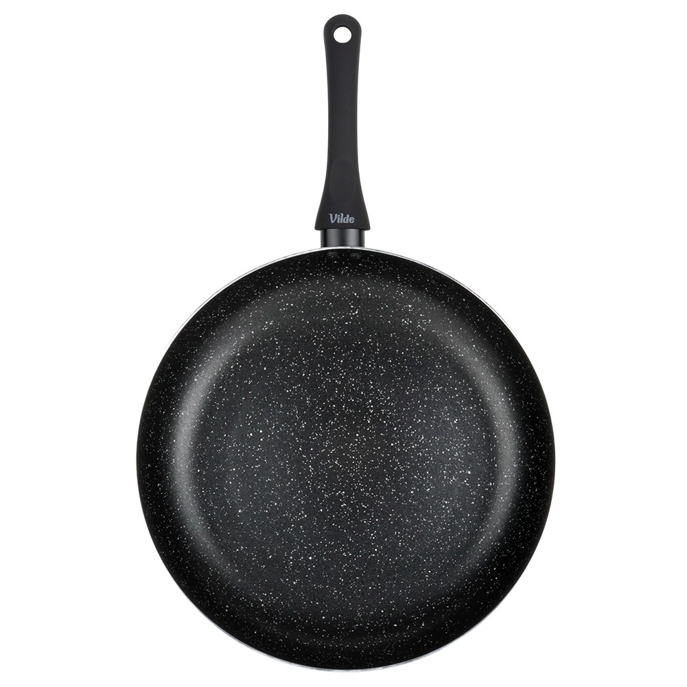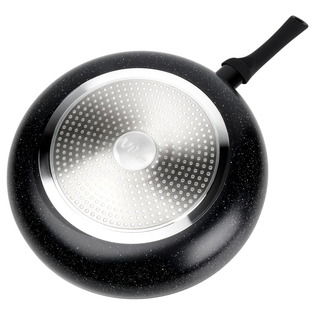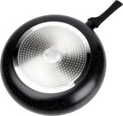 Elegante pan met granieten afwerking in zwart die een betrouwbare hulp wordt voor zowel bakken als stoven. De robuuste aluminium behuizing zorgt voor snelle warmteoverdracht en bespaart energie, terwijl het anti-aanbakoppervlak koken met een minimum aan vet mogelijk maakt en gemakkelijk te reinigen is, ook in de vaatwasser.