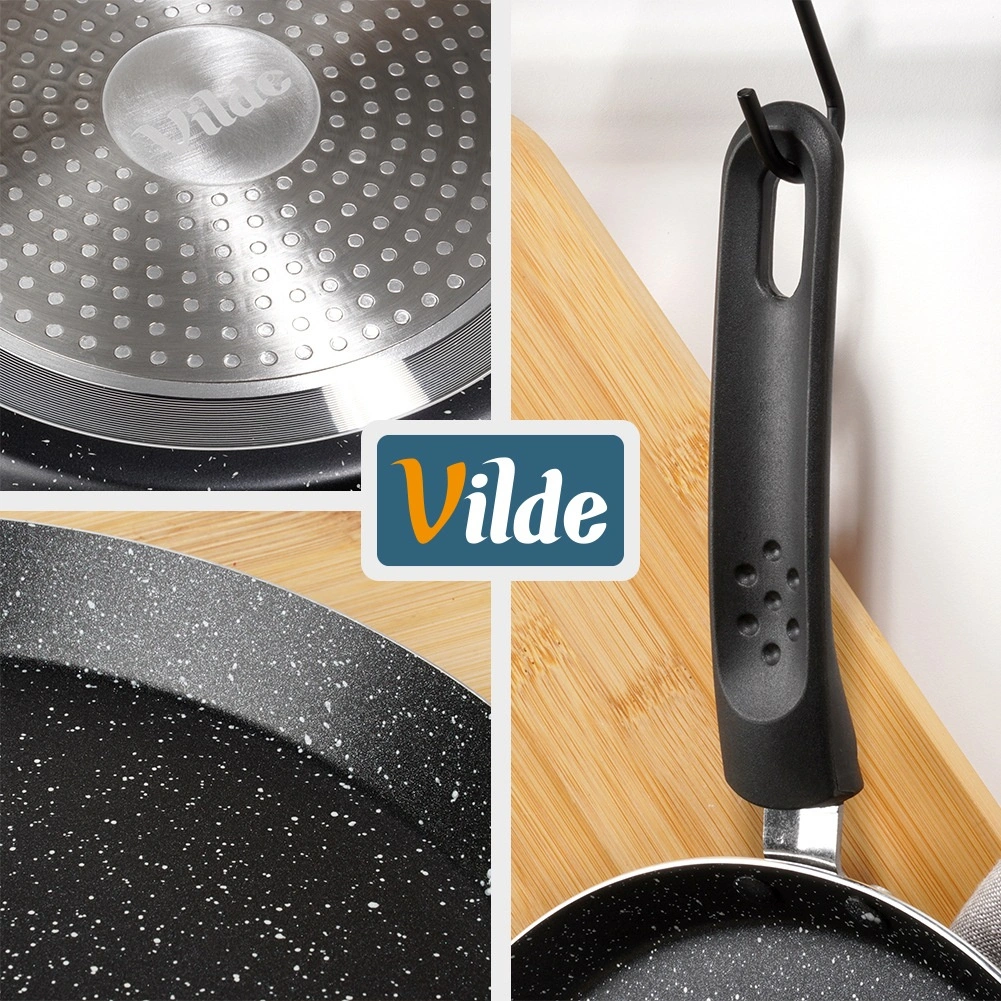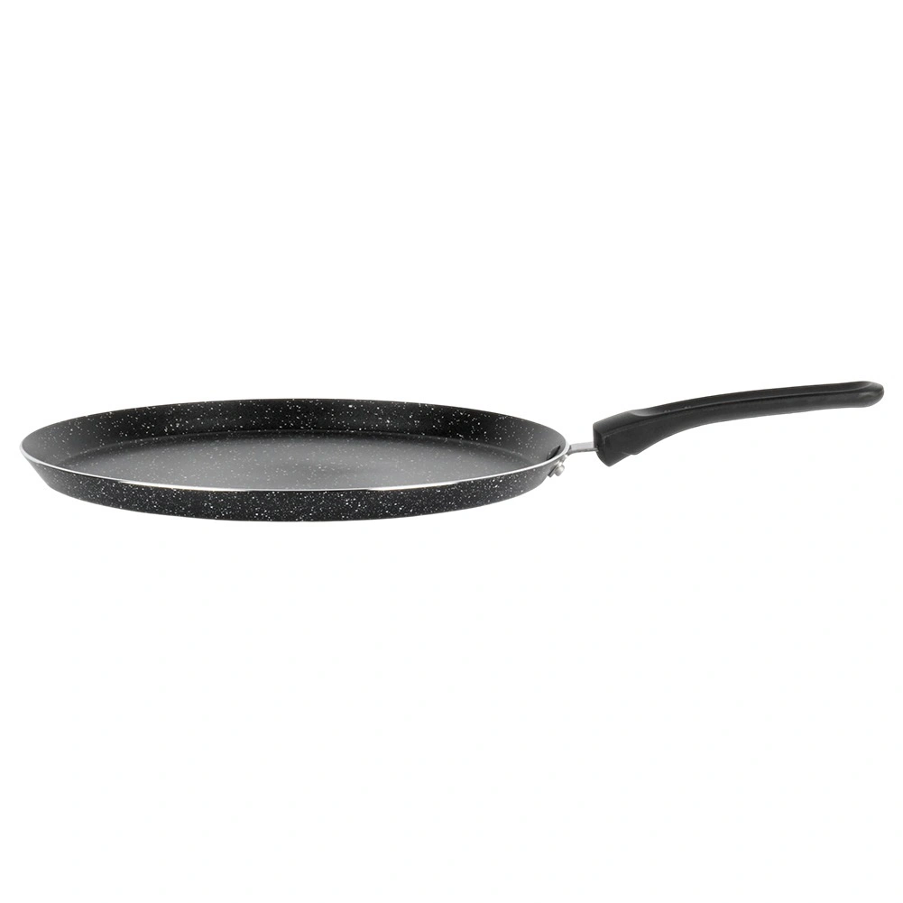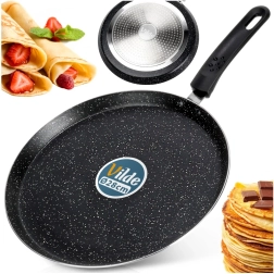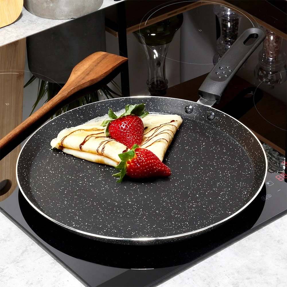Deze elegante granieten pannenkoekenpan is ideaal voor perfect dunne pannenkoeken, poffertjes en omeletten. De lage rand en het brede, vlakke oppervlak maken het schenken van beslag en het omdraaien gemakkelijk. De antiaanbaklaag maakt koken met een minimum aan olie mogelijk en zorgt voor delicate, gelijkmatig gegaarde resultaten.