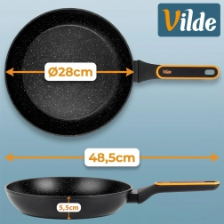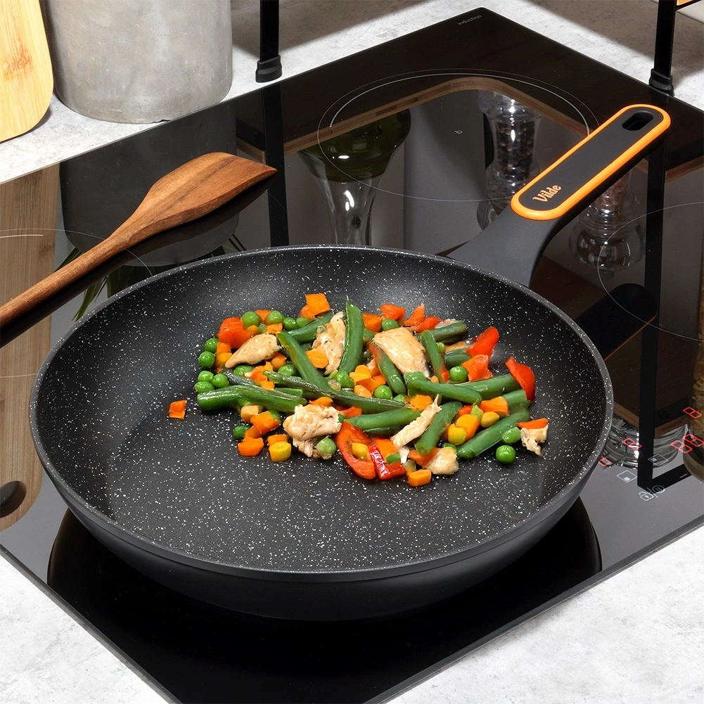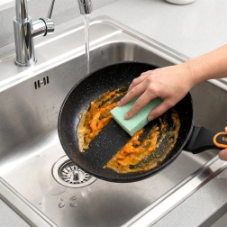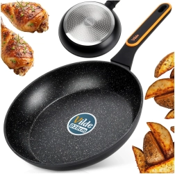 Het stone-effect oppervlak voorkomt aanbranden en maakt koken met weinig vet mogelijk, terwijl schoonmaken in een handomdraai gedaan is.