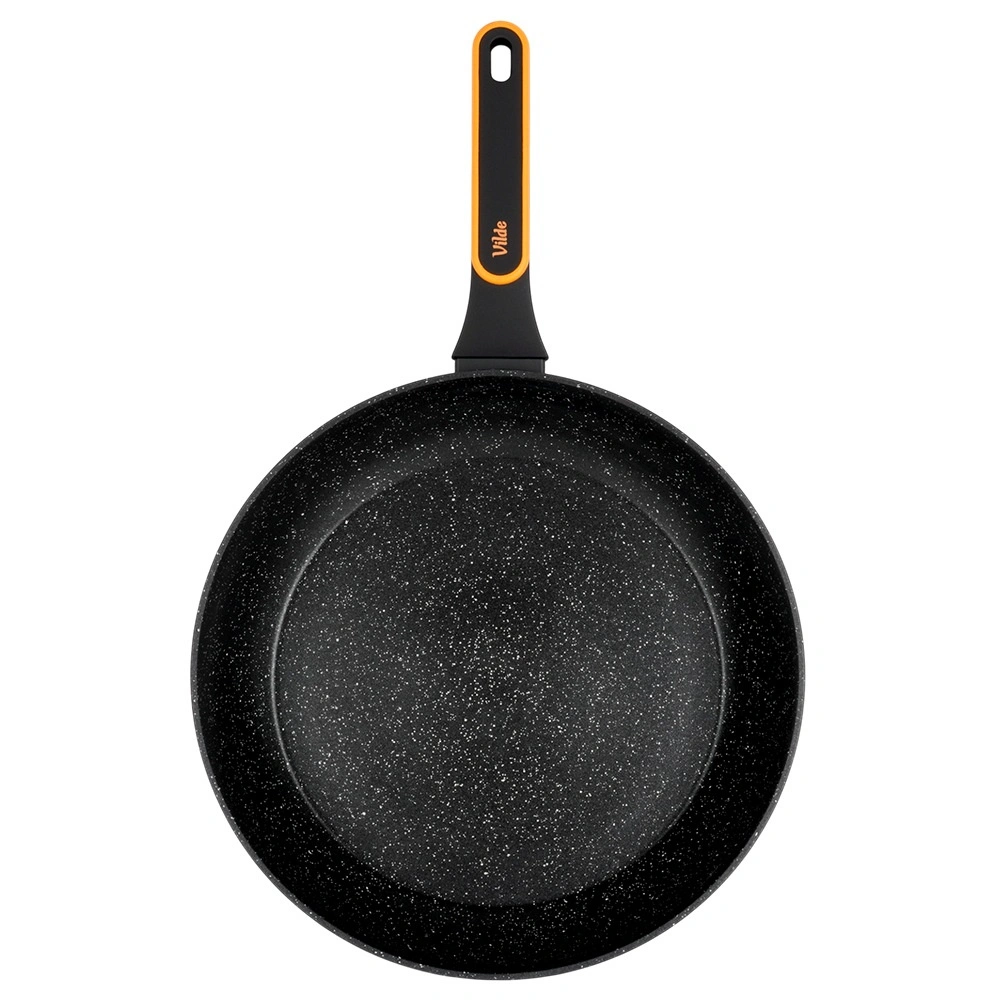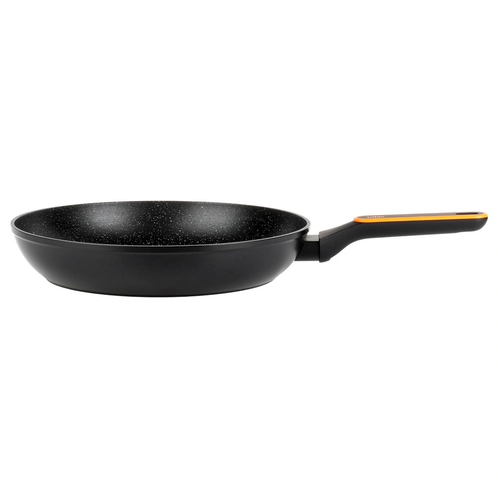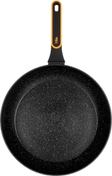 Robuuste pan van gegoten aluminium met een modern, steenachtig uiterlijk, ideaal om te bakken en te stoven. De duurzame antiaanbakgranietlaag in het zwart zorgt voor gemakkelijk loslaten van gerechten en snel reinigen – desgewenst ook in de vaatwasser. De ergonomische greep met antislipafwerking en praktische ophangopening wordt tijdens het koken niet warm.