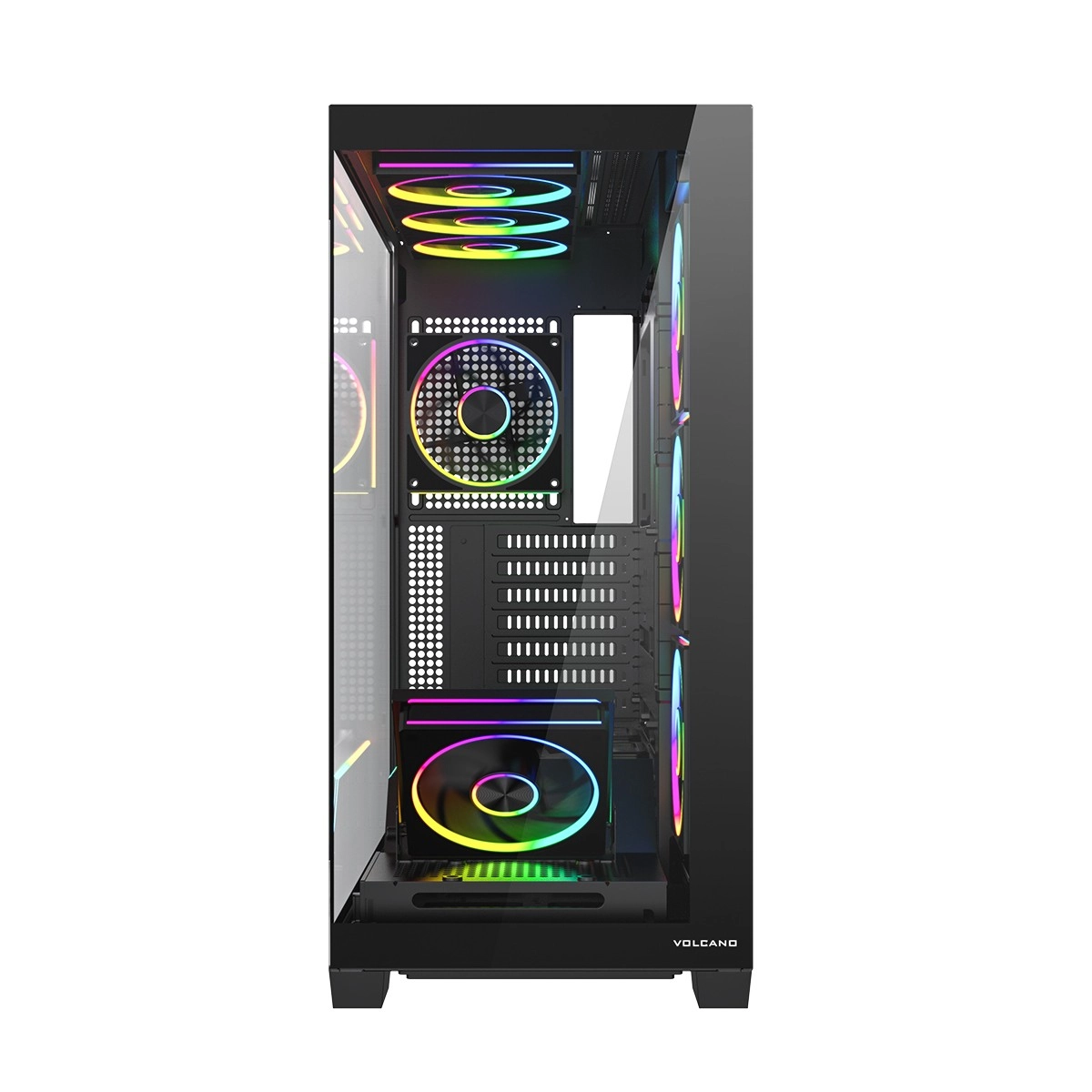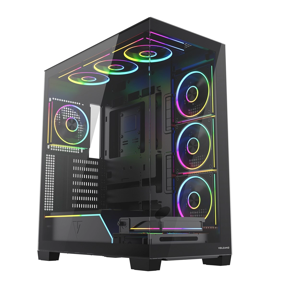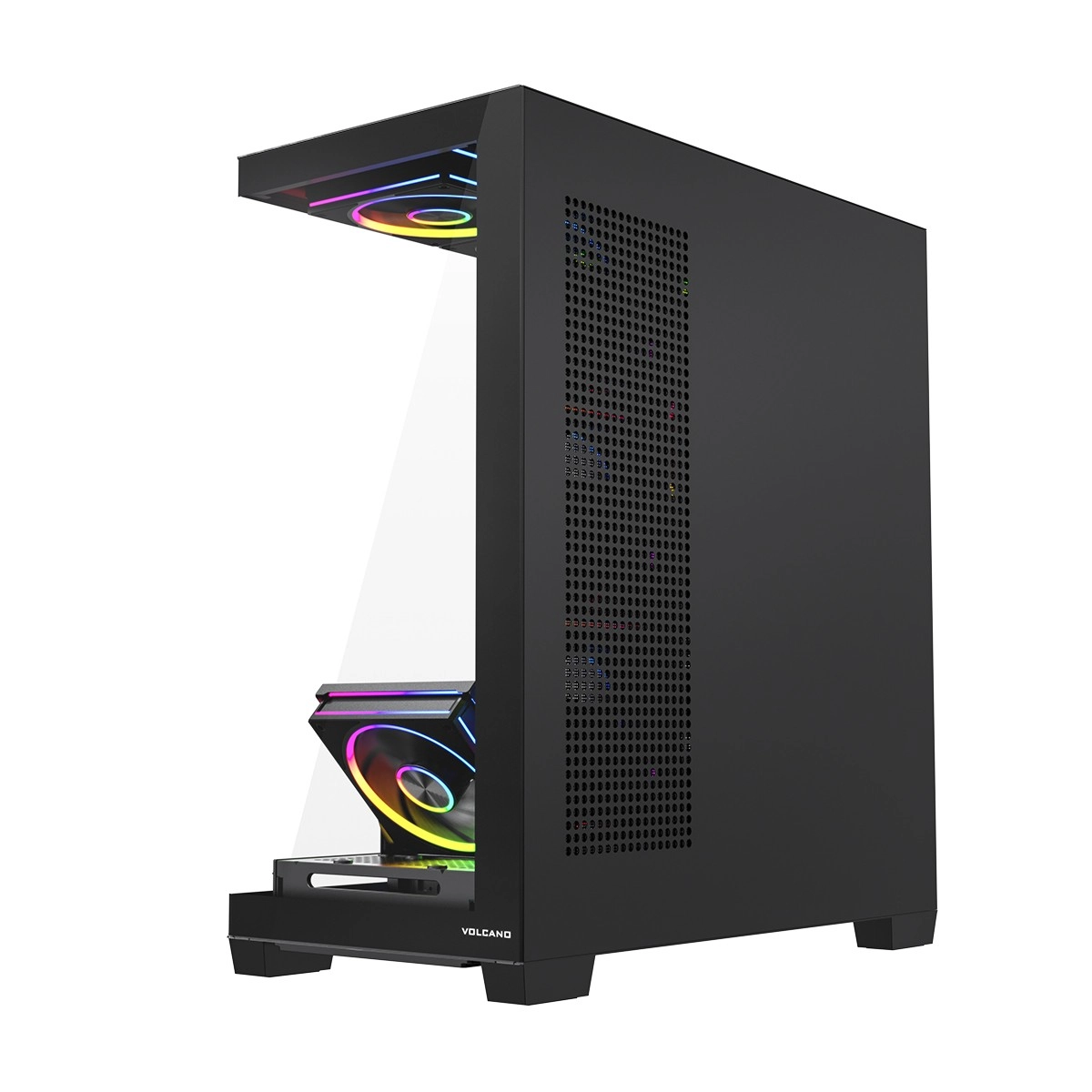 MODECOM Volcano Stellar Plus ARGB Midi 8F is een moderne mid‑tower behuizing met focus op esthetiek, prestaties en eenvoudige montage. Voor- en zijpaneel van gehard glas zetten je componenten mooi in de spotlight, terwijl acht ARGB‑ventilatoren en een LED‑strip indrukwekkende verlichting met uitstekende koeling leveren. Dankzij de vergrote ruimte achter het moederbord is kabelbeheer overzichtelijk en netjes.