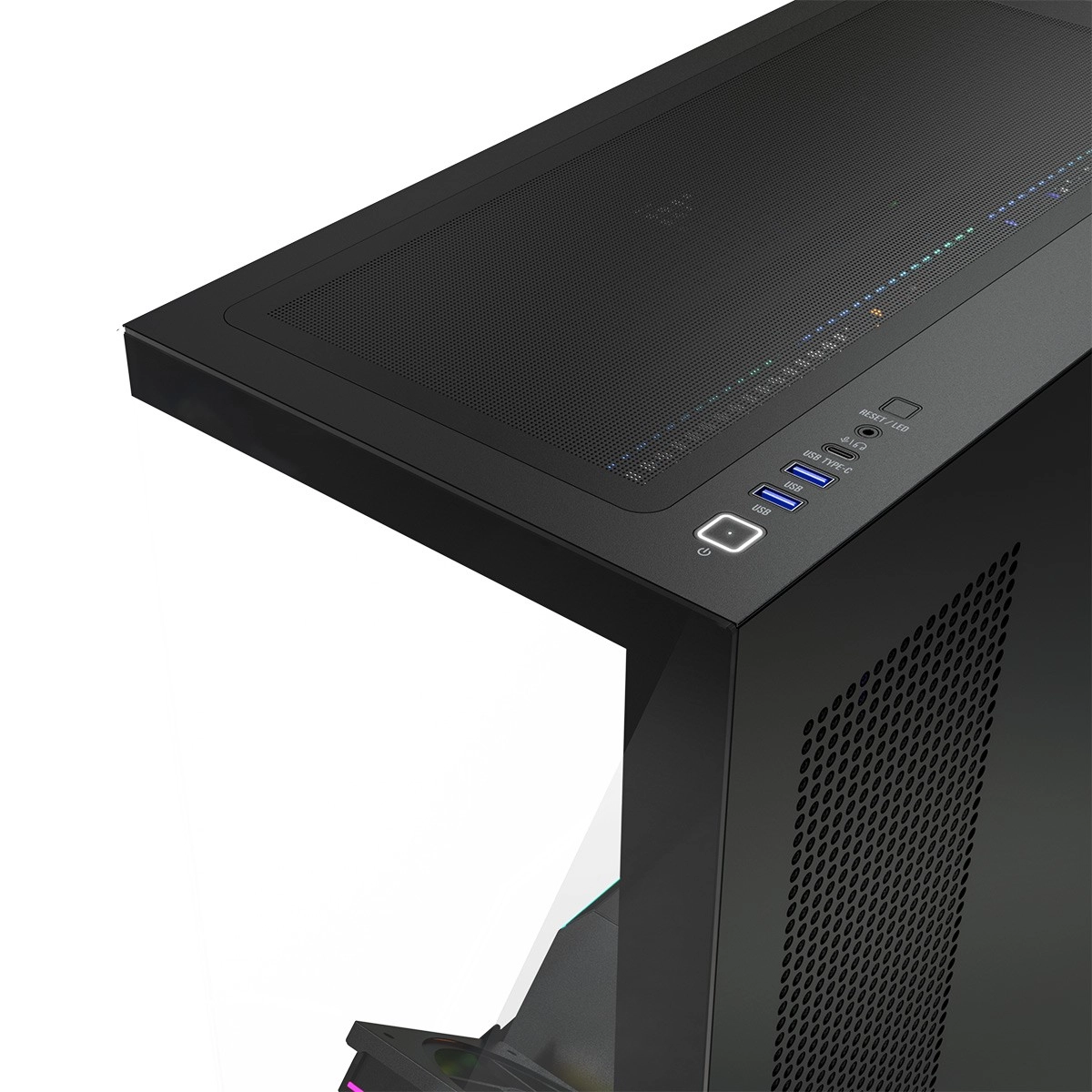 - Premium afwerking: 0,9 mm staal, glazen front en zijkant, strakke lijnen en ARGB‑accenten.
