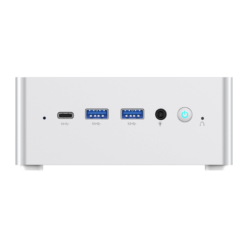 De mini‑pc biedt uitgebreide connectiviteit, inclusief USB‑C, vier USB‑A, twee HDMI, twee 2,5G‑Ethernetpoorten en 3,5 mm audio. Ondersteunt multi‑monitoropstellingen tot 4K en kan eenvoudig achter een monitor worden gemonteerd via VESA. Geoptimaliseerde koeling met twee heatpipes, dubbele uitlaat en actieve SSD‑koeling houdt de prestaties stabiel, ook bij langdurige belasting.