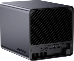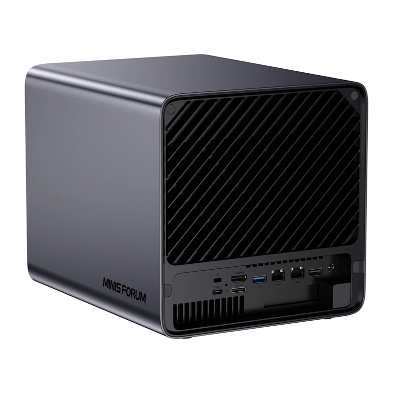 Topklasse connectiviteit omvat 10 GbE + 5 GbE, twee USB4-poorten, HDMI 2.1, en uitbreidbaarheid via PCIe x16 en OCuLink (eGPU). MinisCloud OS biedt multiplatform-toegang (Windows/macOS/iOS/Android), een slimme AI-fotobibliotheek, LZ4-compressie en versleutelde externe verbinding zonder complexe configuratie.