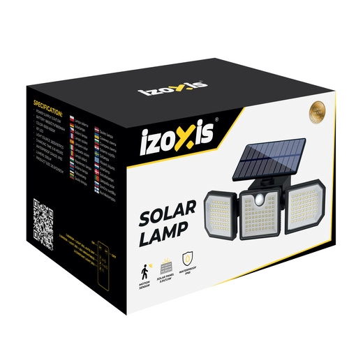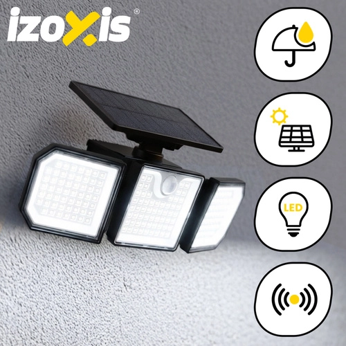 Krachtige IZOXIS solarlamp met 167 LED en een lichtopbrengst van 500 lm verlicht betrouwbaar de tuin, ingang, gevel en oprit. Dankzij het zonnepaneel 5,5 V / 1,5 W en de 1800 mAh batterij laadt hij overdag op en gaat hij na zonsondergang automatisch branden. Een bewegingssensor, schemersensor en 3 modi zorgen voor licht wanneer het nodig is. De IP65-bescherming en zijreflectoren garanderen een brede dekking en een lange levensduur zonder kabels en zonder stroomkosten.