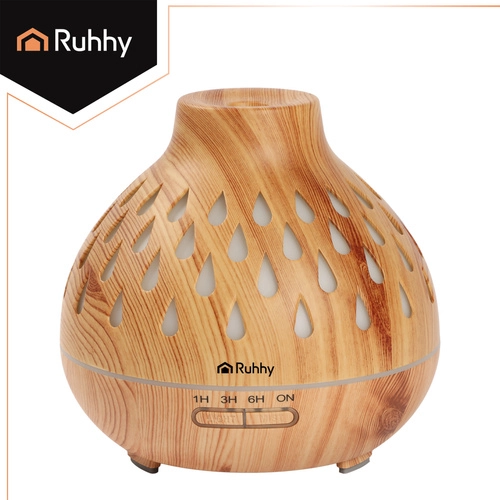 Creëer thuis een oase van rust. De ultrasone RUHHY aroma-diffuser verandert water met enkele druppels etherische olie in een fijne, koele nevel die de lucht bevochtigt en de ruimte subtiel parfumeert. De lichte houtlook past perfect bij moderne en Scandinavische interieurs en de stille werking is ideaal voor de slaapkamer, kinderkamer en kantoor.
