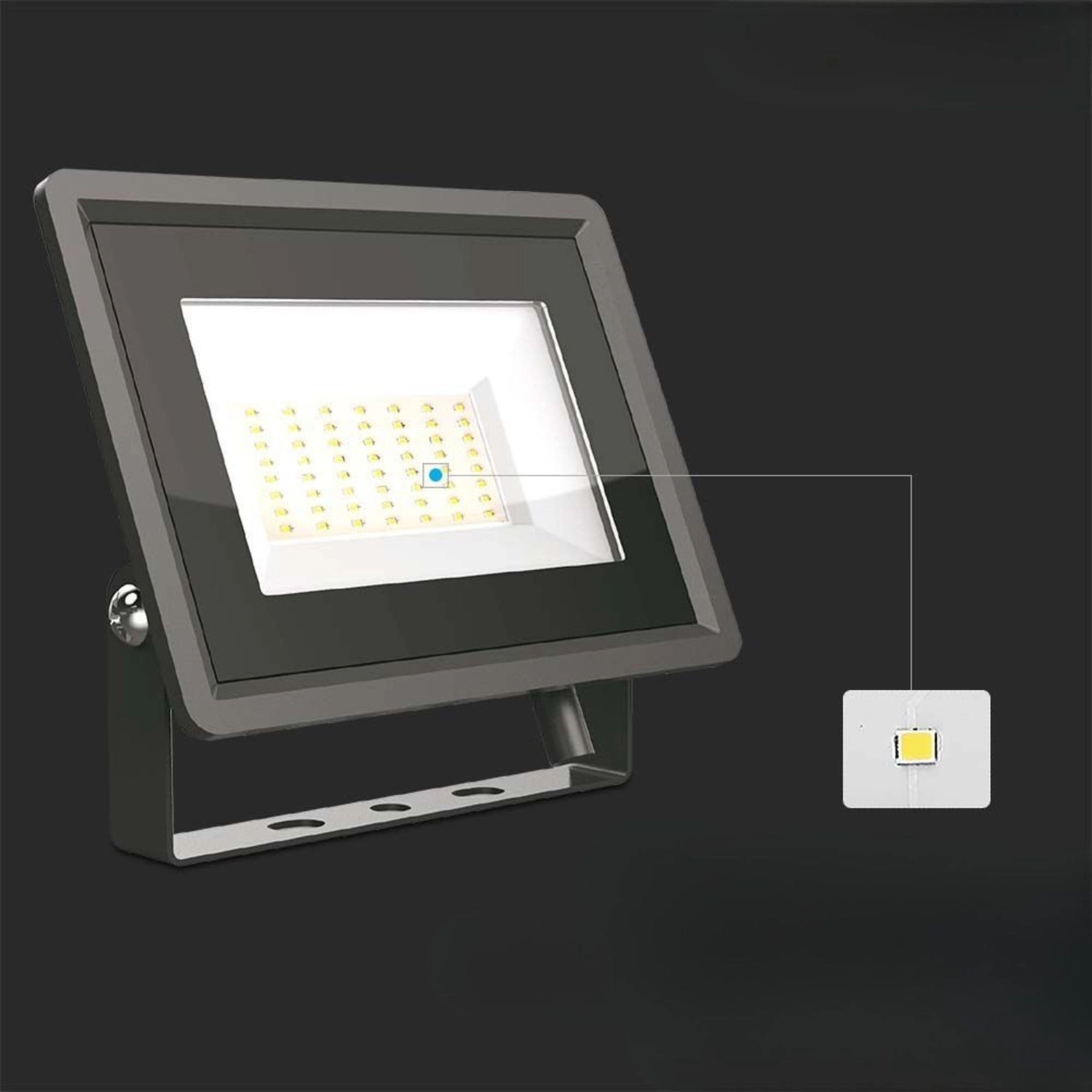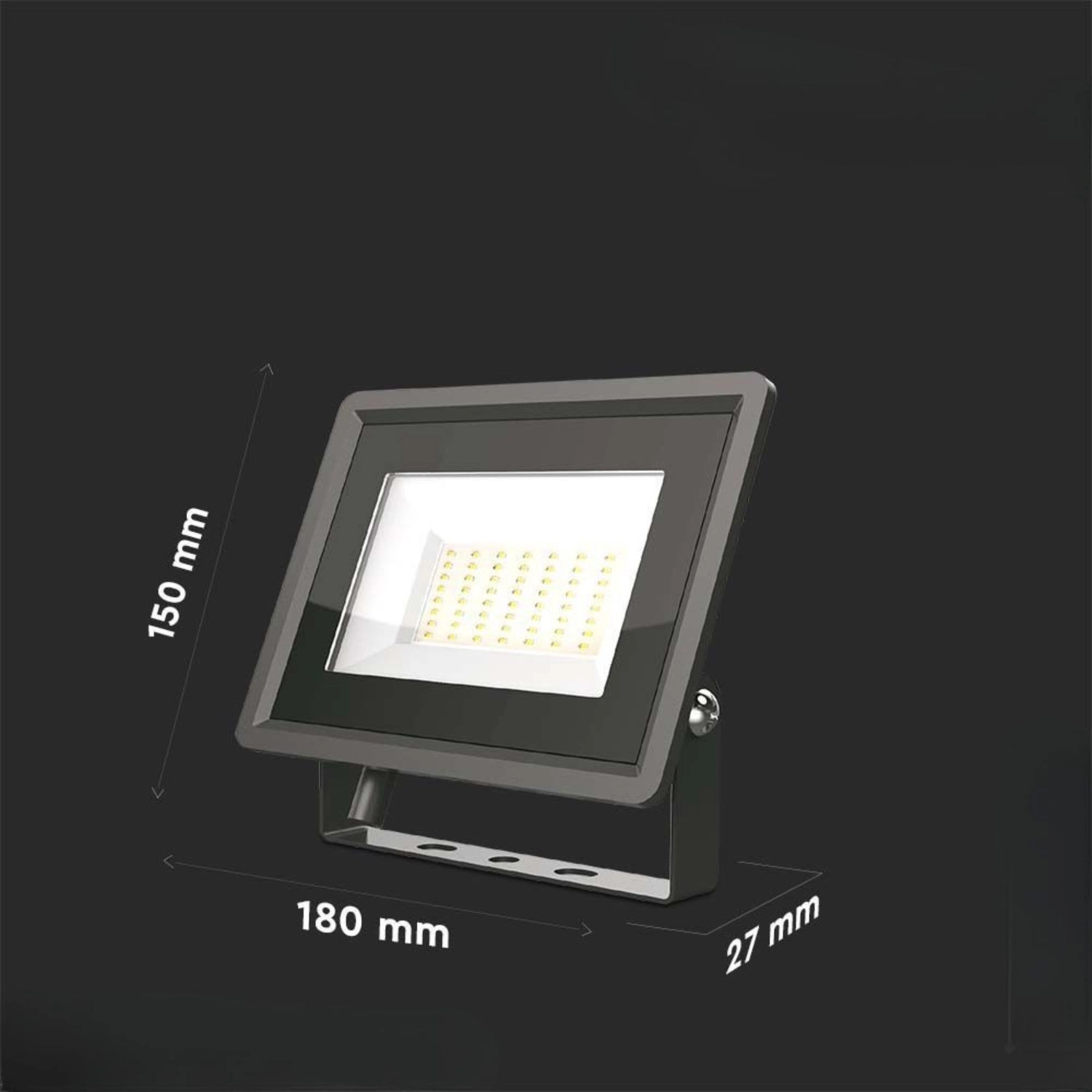Krachtige LED-schijnwerper 50 W met een geavanceerde SMD LED-chip en een geïntegreerde IC-driver die een stabiele stroom levert zonder externe voeding. Dankzij de neutraal witte kleur (4000 K) zorgt hij voor natuurlijke en comfortabele verlichting, geschikt voor commercieel en industrieel gebruik.