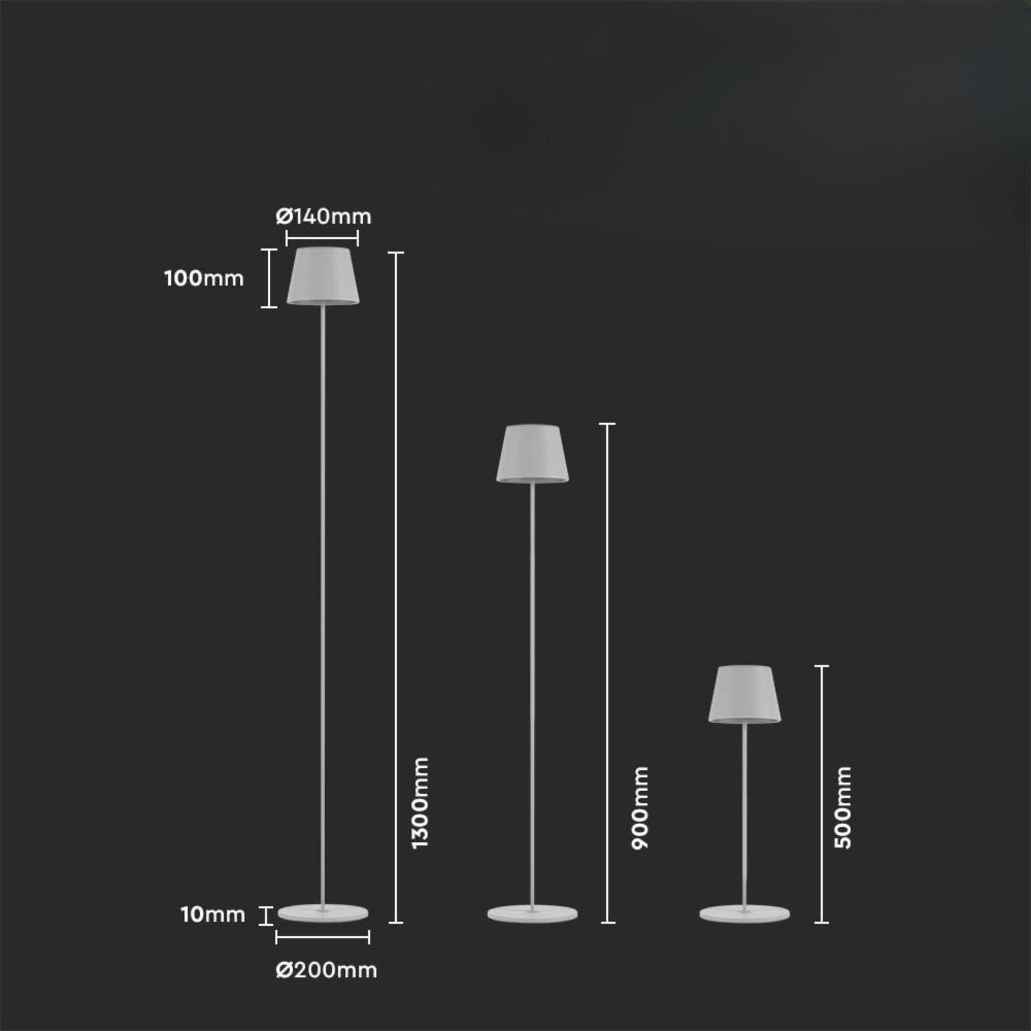 Dankzij de modulaire constructie pas je haar eenvoudig aan de ruimte aan: verstelbare hoogte 500 / 900 / 1300 mm met afneembare stangen, geschikt voor slaapkamer, woonkamer en werkkamer. USB‑C opladen (DC 5 V, 1–2 A) zorgt voor gemakkelijk opladen zonder ingewikkelde installatie en de aluminium behuizing garandeert een lange levensduur. IP54‑bescherming beschermt tegen stof en vocht.