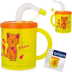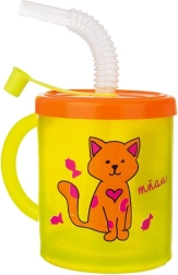 De kinderbeker met rietje en deksel is een uitstekende keuze voor dagelijks drinken thuis en in de tuin. Het halftransparante lichaam in het geel met een vrolijk kattenmotief maakt het voor het kind makkelijk om de hoeveelheid drank te controleren. Het oranje deksel beschermt de drank tegen morsen en insecten, het transparante rietje zorgt voor comfortabel en veilig drinken.