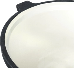 De gladde, beige geëmailleerde laag minimaliseert aanhechten en maakt onderhoud eenvoudig, en is tegelijk hygiënisch en niet-reactief met voedsel.