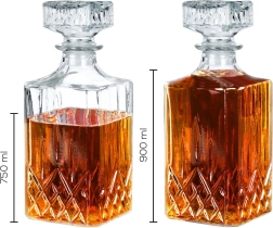 Ontdek een tijdloze karaf die functionaliteit en esthetiek combineert. De vierkante body met opvallende decoratieve slijping komt prachtig tot zijn recht in de thuisbar en zorgt voor veilig en elegant serveren van whisky, rum of andere distillaten. Dankzij het optimale bruikbare volume van 750 ml ligt de karaf prettig in de hand en heeft de drank voldoende ruimte om zijn bouquet te ontwikkelen.