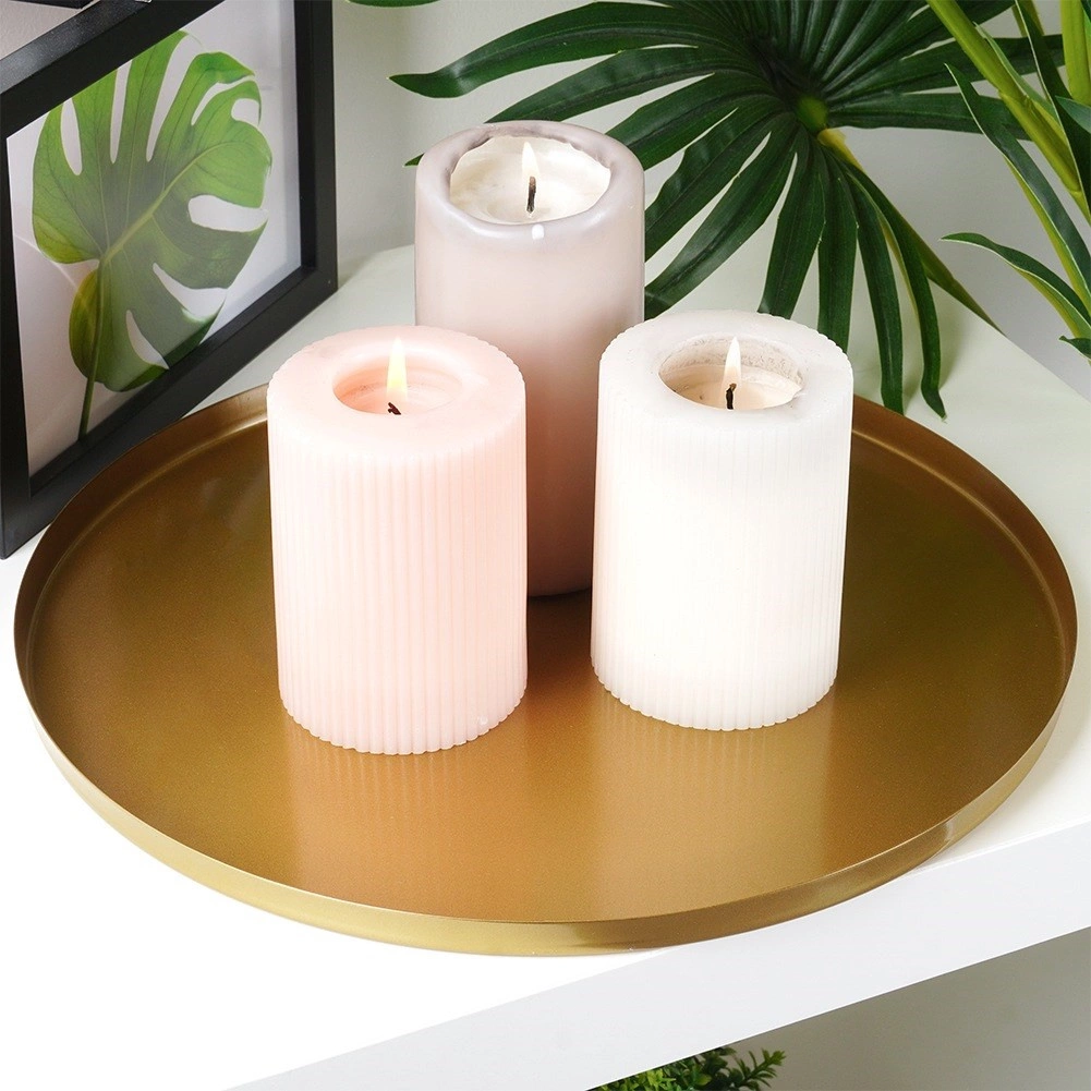 De lage, licht verhoogde rand houdt kaarsen en accessoires op hun plek en beschermt oppervlakken tegen druppelend kaarsvet.