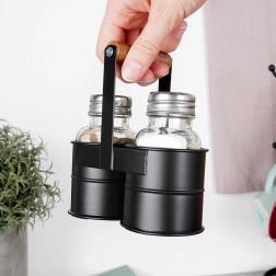 De compacte metalen houder met houten handgreep houdt zout- en pepervaatje altijd bij elkaar en maakt het eenvoudig om ze van de keuken naar de tafel te verplaatsen.