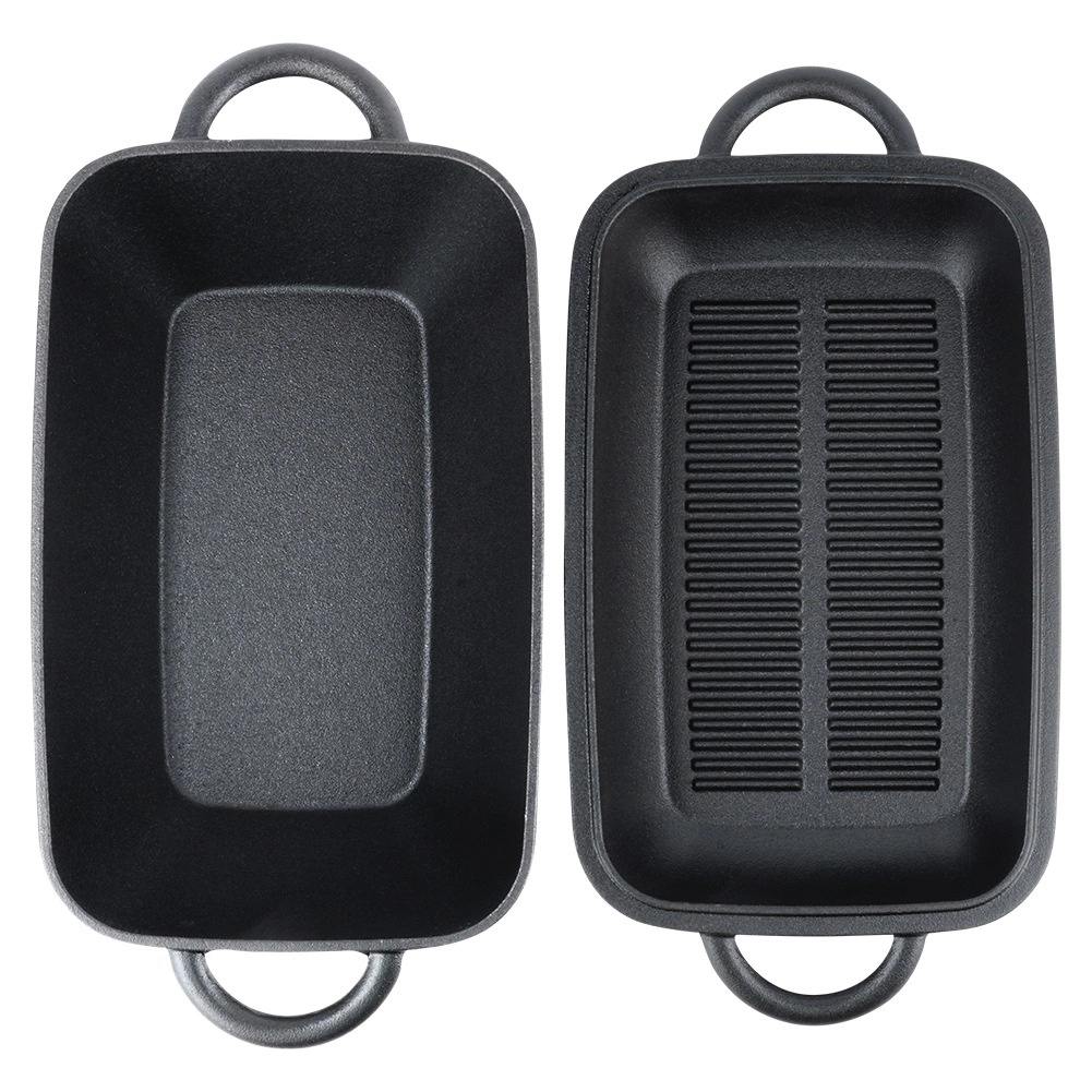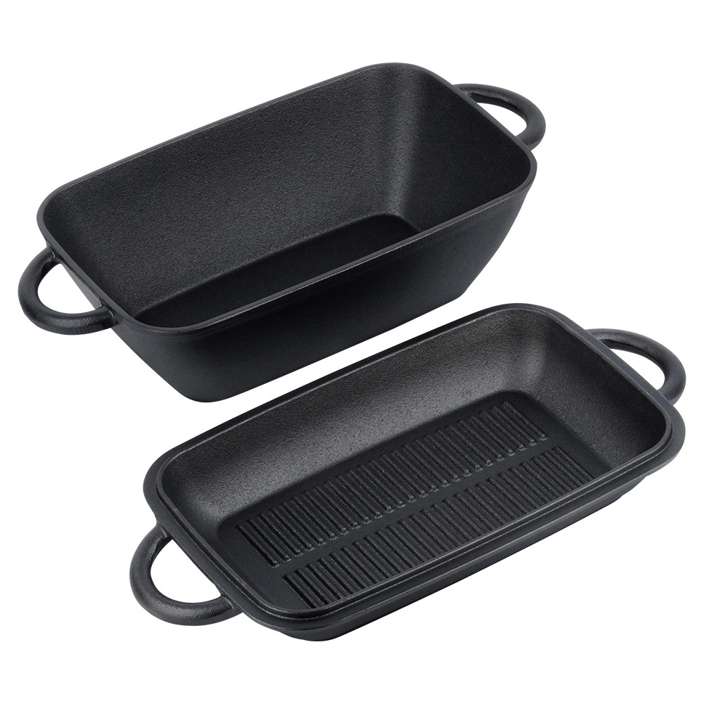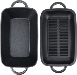 Gietijzeren braadpan 2-in-1 met deksel en grillpan 3,5 l / 1,5 l