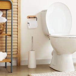 De elegante toiletpapierhouder brengt een puur design en functionaliteit in elke badkamer. De metalen arm in zwart en de bamboe achterplaat passen perfect bij moderne interieurs en zorgen tegelijk voor duurzaamheid en een lange levensduur. Dankzij de doordachte vorm is het vervangen van de rol snel en comfortabel.