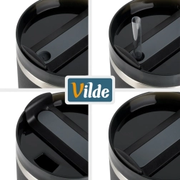 Het deksel met draaimechanisme en siliconen afdichting voorkomt lekken en biedt twee drinkopties: via het rietje of via de tuit zonder rietje. Antislipdetails op de handgreep verbeteren de gripzekerheid. Voor maximaal temperatuurbehoud raden we aan de beker voor gebruik met heet of koud water te spoelen en voor circa 90% van het volume te vullen.