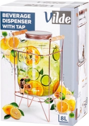 De glazen drankdispenser van 8 l is ideaal voor familiefesten, barbecues en horeca. De verhoogde standaard maakt comfortabel tappen in glazen mogelijk, de kraan met afdichting zorgt voor een gelijkmatige stroom en het schroefdeksel houdt de drank schoon en vers. Het transparante glas met reliëfaccent benadrukt de kleur van limonades en fruitdranken.