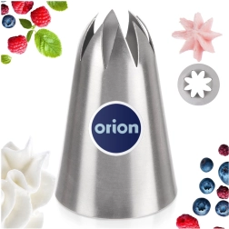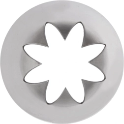 Praktisch banketbakkersspuitmondje in bloemvorm van hoogwaardig roestvrij staal voor eenvoudig en effectvol decoreren van taarten, gebak en cupcakes. Dankzij de stevige constructie is het duurzaam en voedselveilig, past op de meeste spuitzakken en is vaatwasmachinebestendig.
