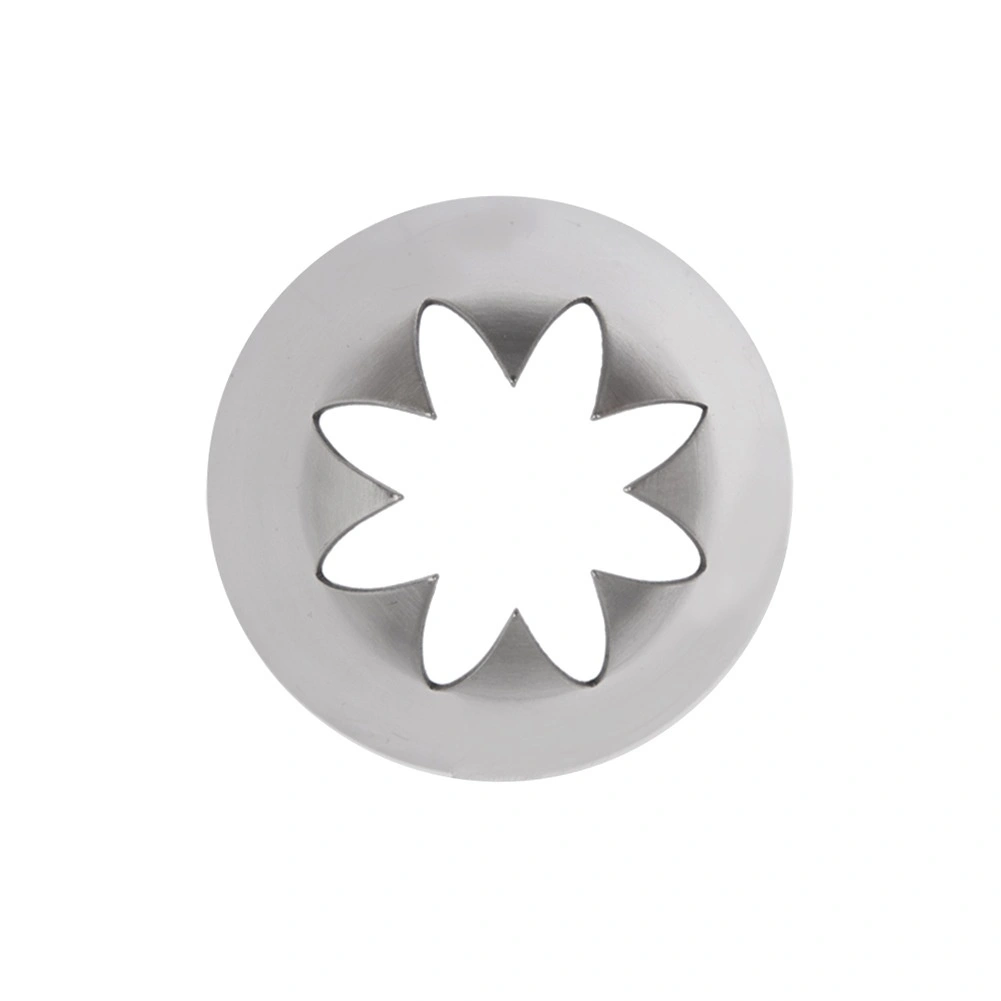 Dit roestvrijstalen spuitmondje in bloemvorm maakt het mogelijk om in enkele seconden elegante bloemendecoraties van crèmes en glazuren te maken. Geschikt voor professionele bakkers en thuisbakkers die hun desserts een opvallende en strakke uitstraling willen geven.