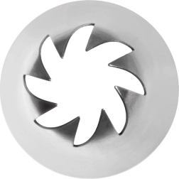 Universele stalen spuitmond in bloemvorm voor eenvoudig en precies decoreren van taarten, gebak en cupcakes. Dankzij de duurzame constructie van roestvrij staal creëert hij effectvolle bloemmotieven, past op alle spuitzakken en is vaatwasmachinebestendig. Een uitstekende keuze voor zowel beginners als professionals.