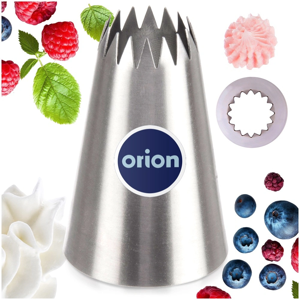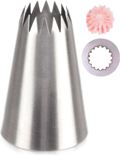 Deze hoogwaardige roestvrijstalen spuitmond met open stervorm maakt decoraties met uitgesproken ribbels mogelijk – ideaal voor crèmes, botercrème en slagroom. Dankzij de universele basis past hij op de meeste wegwerp- en herbruikbare spuitzakken en zorgt hij voor een precieze, gelijkmatige doorstroming van de crème.