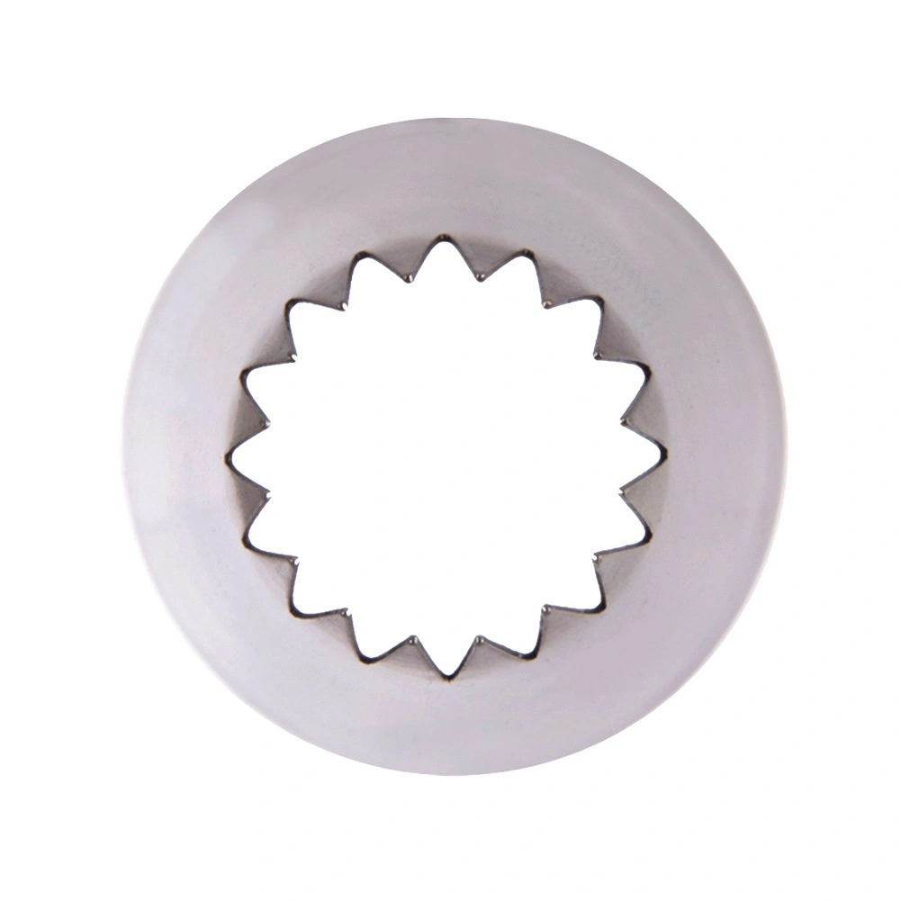 Praktische banketbakkersspuitmond met een open ster voor eenvoudig en effectvol decoreren van taarten, gebak en cupcakes. Gemaakt van roestvrij staal, duurzaam, voedselveilig en geschikt voor de vaatwasser. Compatibel met alle spuitzakken en maakt moeiteloos prachtige rozetten, sterretjes en golfjes.