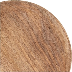 Elegante ronde schaal van natuurlijk mangohout met een diameter van 25 cm, ideaal voor het serveren van voorgerechten, desserts en snacks en tevens te gebruiken als stijlvolle decoratieve onderlegger. Het massieve ontwerp, de natuurlijke houtnerf en het eenvoudige onderhoud maken het tot een praktische aanvulling voor keuken en woonkamer.