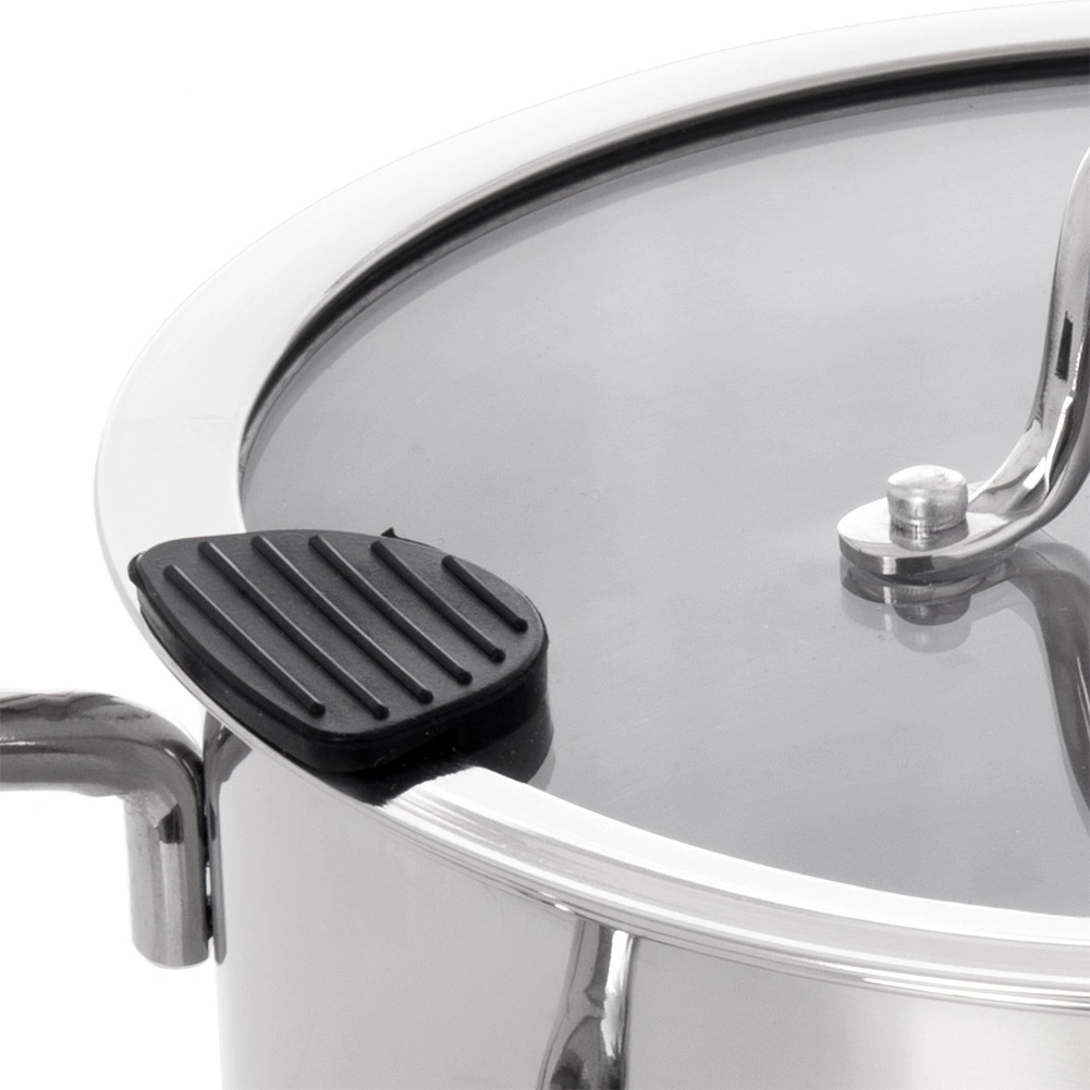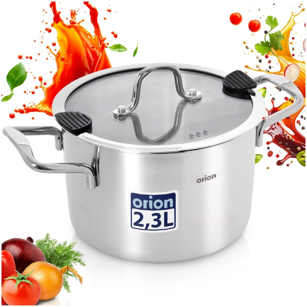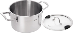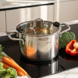 Praktische roestvrijstalen pan met een inhoud van 2,3 l en glazen deksel, ideaal voor dagelijks koken, stoven en bakken. Hij heeft een meerlaagse bodem voor een gelijkmatige warmteverdeling, een deksel met schenktuit en siliconen elementen voor eenvoudig afgieten en is geschikt voor alle kookplaten, inclusief inductie, evenals voor de oven tot 200 °C. Eenvoudig te onderhouden en vaatwasmachinebestendig.