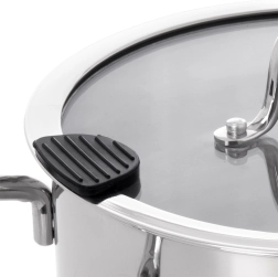 - Veilig afgieten dankzij de schenktuit in het deksel en siliconen elementen voor een stevige grip.