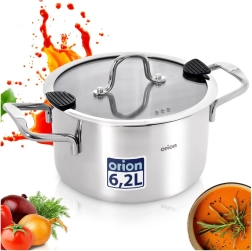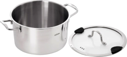 Grote universele pan van hoogwaardige roestvrijstaal met een diameter van 24 cm en een inhoud van 6,2 l voor dagelijks koken. Hij heeft een glazen deksel met praktische schenktuit en siliconen elementen voor veilig afgieten. Dankzij de meerlaagse bodem met aluminium kern wordt de warmte gelijkmatig verdeeld, geschikt voor gas, elektrisch, keramisch en inductie en kan ook in de oven tot 200 °C worden gebruikt. Duurzaam RVS 304, eenvoudig onderhoud en vaatwasserbestendig.