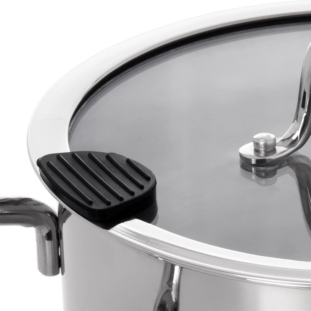 Het deksel van gehard glas heeft een ingebouwde zeef en siliconen elementen voor een zekere grip. Giet gemakkelijk water van pasta of groenten af zonder extra hulpmiddelen.