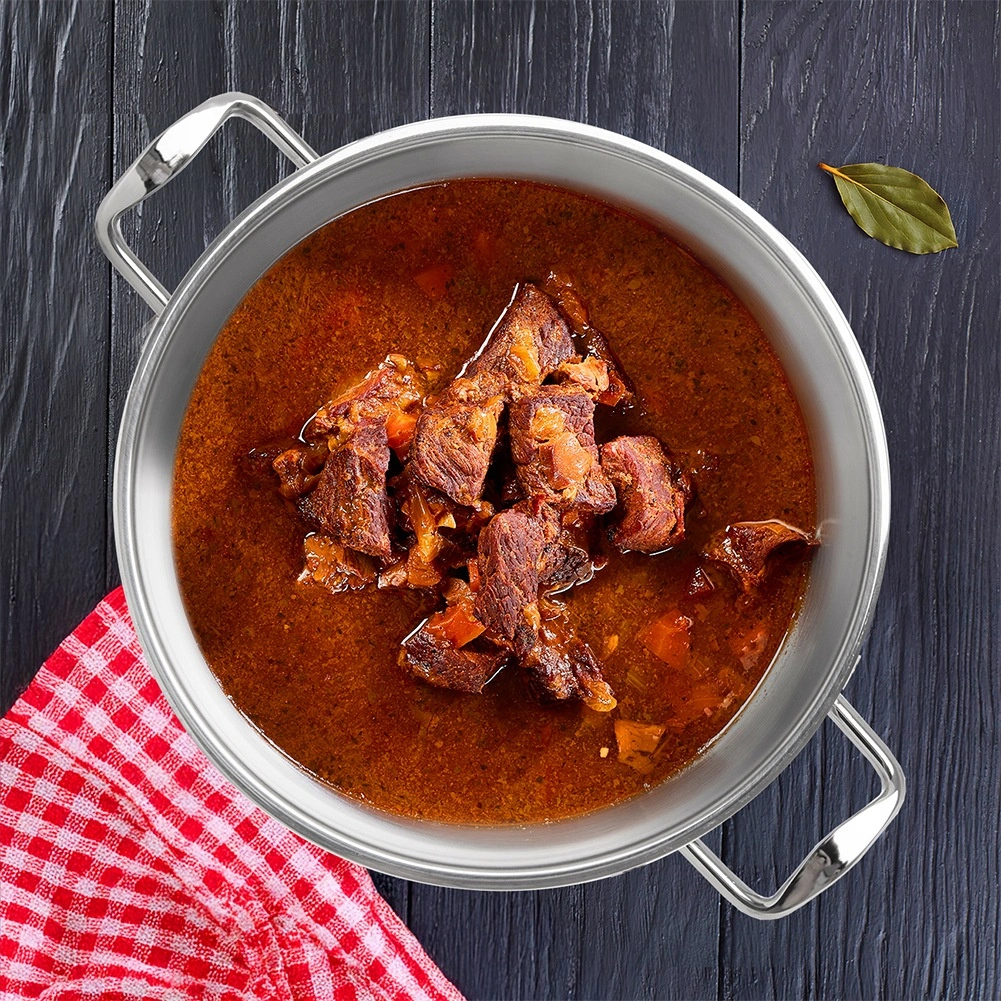 De universele RVS pan VENICE met een inhoud van 6,2 l is een betrouwbare helper voor het koken van soepen, het stoven van vlees, het bereiden van goulash en eenpansgerechten. Het glazen deksel met schenktuit en siliconen elementen maakt veilig afgieten en betere controle tijdens het koken mogelijk. Het elegante gepolijste oppervlak past in elke keuken en is gemakkelijk te onderhouden.