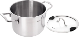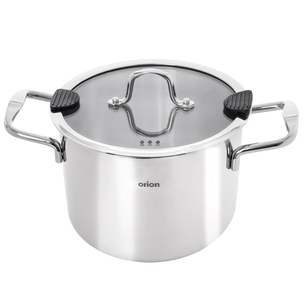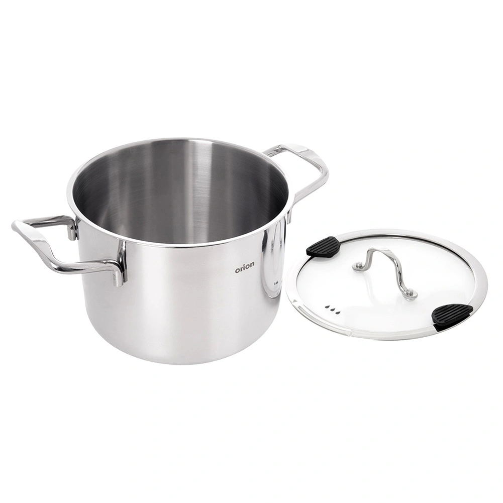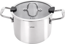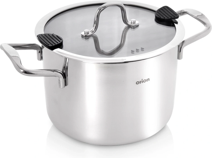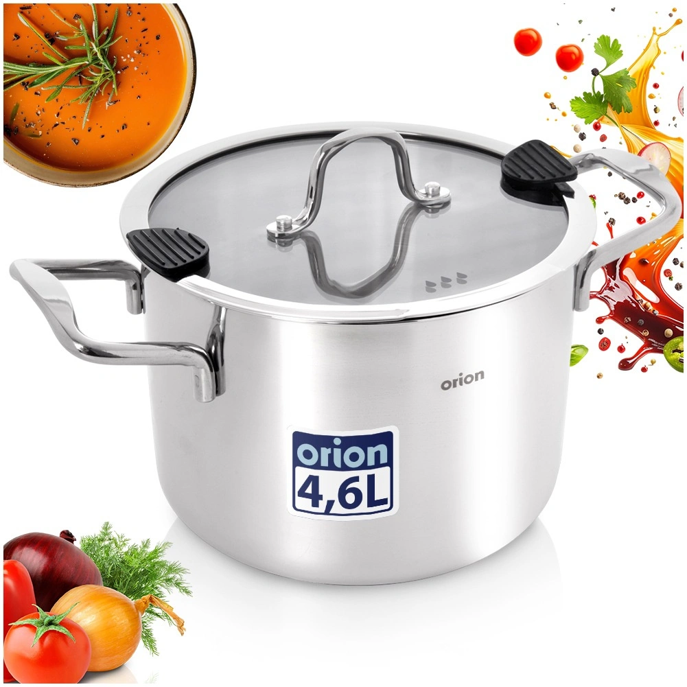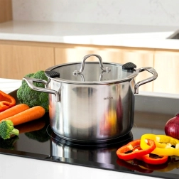Praktische roestvrijstalen pan VENICE met een inhoud van 4,6 l en een diameter van 20 cm, ideaal voor dagelijks koken, stoven en bakken. Dankzij roestvrij staal 304, een glazen deksel met schenktuit en een meerlagige bodem met aluminium biedt hij een gelijkmatige verhitting, comfortabel afgieten zonder vergiet en een lange levensduur. Geschikt voor gas, elektrisch, keramisch en inductie en voor gebruik in de oven tot 200 °C.