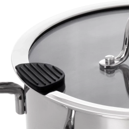 De pan is perfect voor soepen, goulash, gestoofd vlees en eenpansgerechten. Het deksel van gehard glas met siliconen elementen maakt veilig afgieten zonder extra hulpmiddelen mogelijk en zorgt voor comfortabele stoomafvoer. Dankzij het elegante design kun je de maaltijd direct aan tafel serveren.