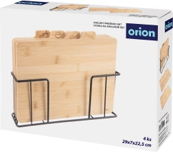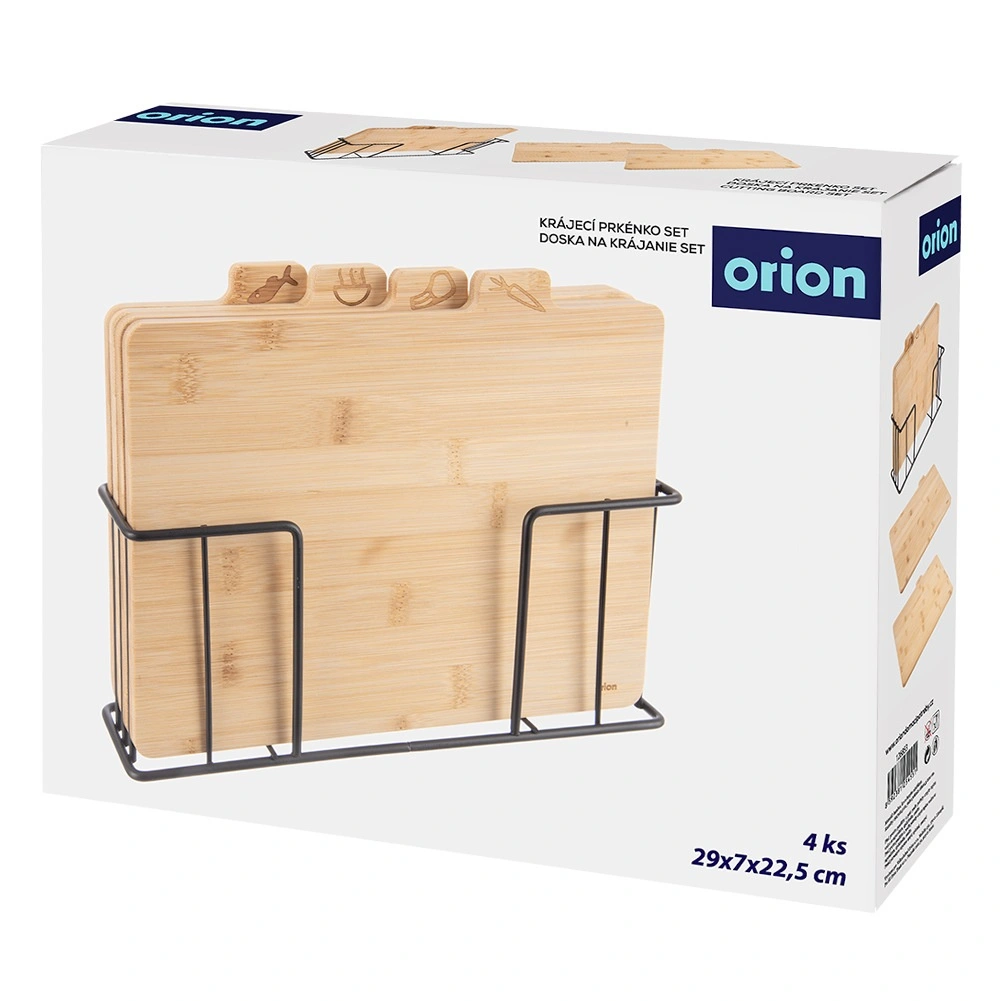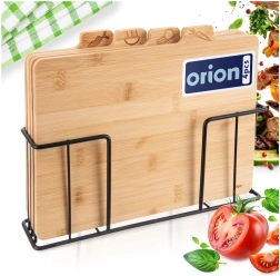 De set snijplanken van hoogwaardig bamboehout zorgt voor orde op het aanrecht en maximale hygiëne bij het bereiden van maaltijden. Duidelijke grafische pictogrammen op de tabbladen maken het eenvoudig de juiste plank voor specifieke etenswaren te kiezen en helpen kruisbesmetting te voorkomen. De stabiele metalen houder bespaart ruimte, zorgt voor snel drogen en overzichtelijke opslag.