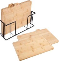 Houten bamboe snijplanken met houder, 4 stuks