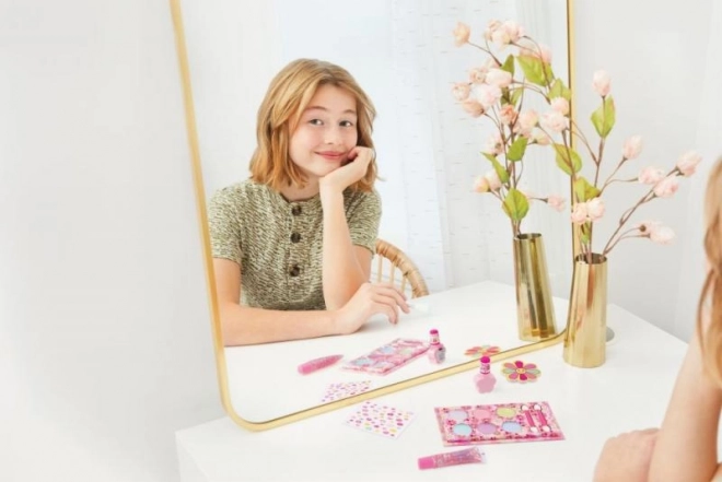 Met deze cosmeticaset Bloeiende Schoonheid kun je een perfecte florale look creëren. Bevat een bloemige nagelvijl voor de voorbereiding van je nagels, roze nagellak en nagelstickers.