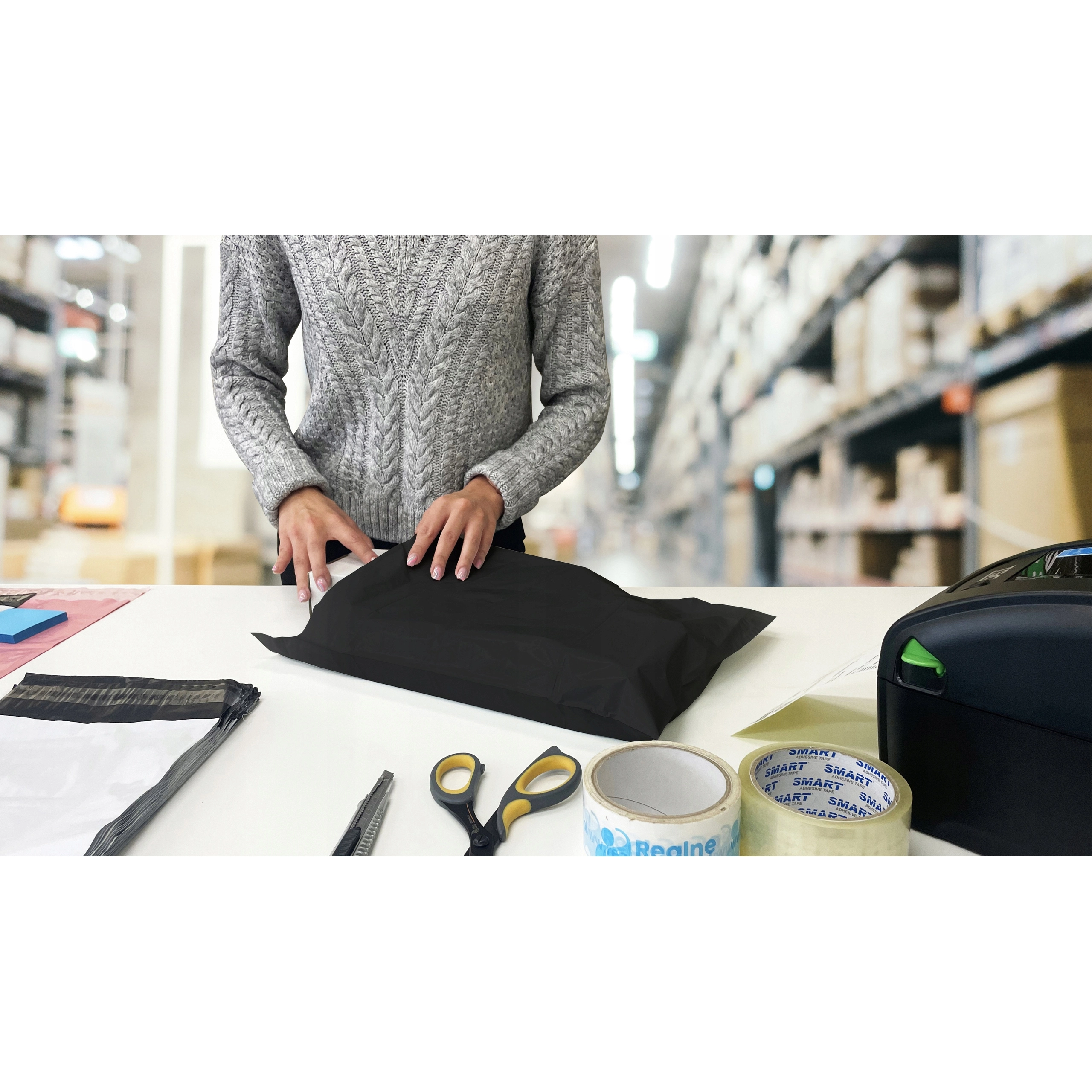 Deze zwarte kunststof post- en koeriersenveloppen B5 (190 × 250 mm) zijn ideaal voor het snel en veilig verzenden van textiel, accessoires en kleinere producten. De peel‑and‑seal zelfklevende strip zorgt voor een betrouwbare sluiting zonder tape, wat tijd en kosten bespaart bij de expeditie.