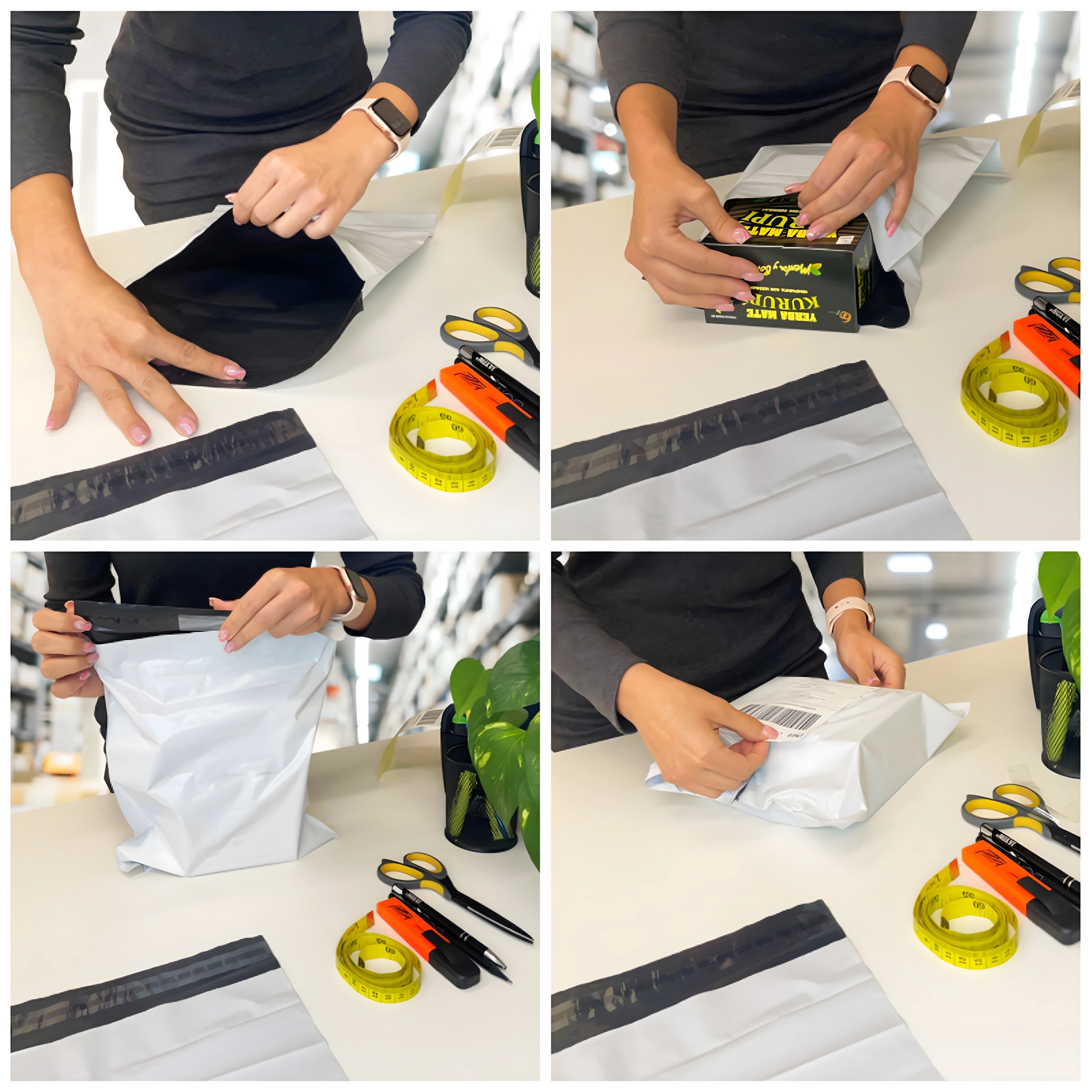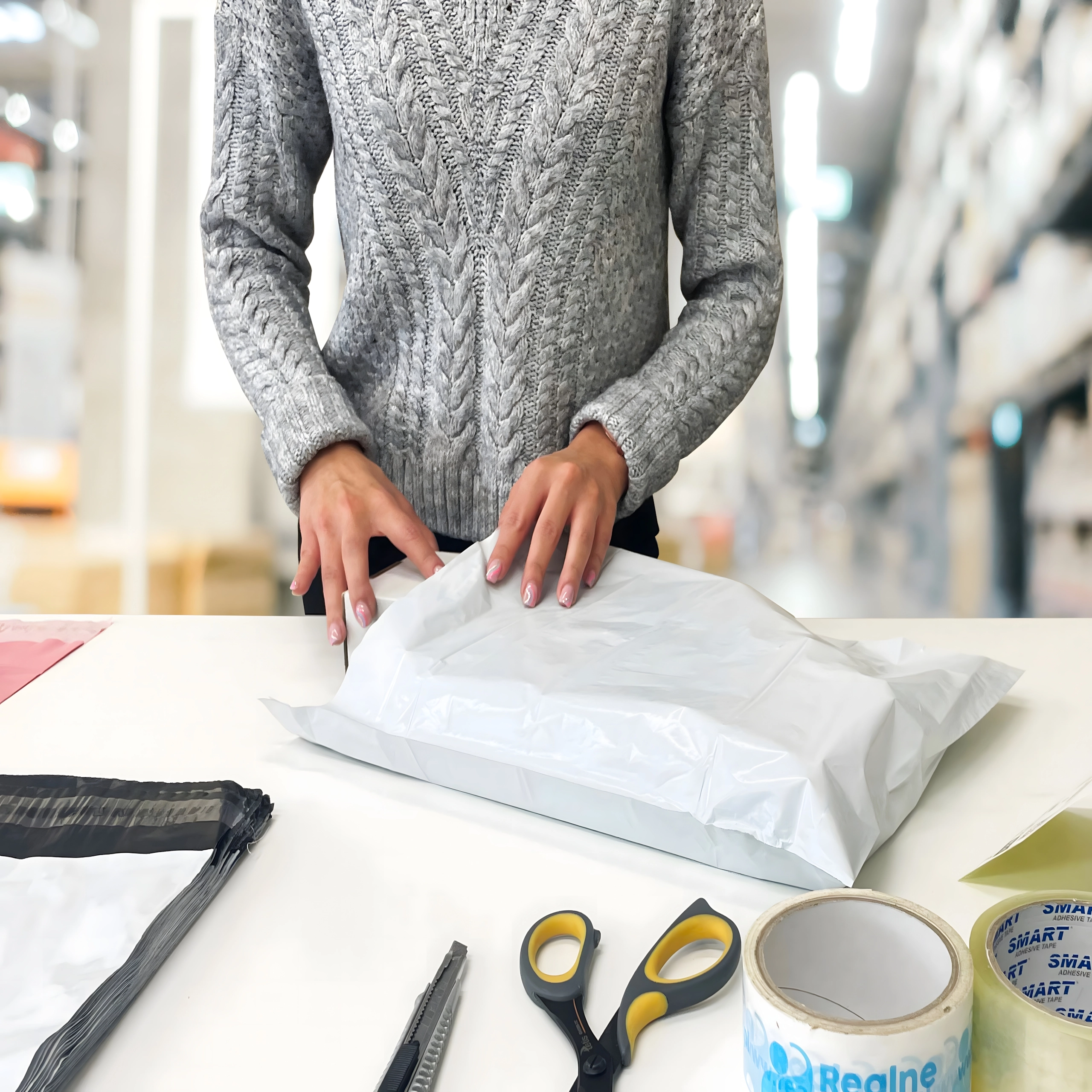 Hoogwaardige poly mailers in het formaat 600 × 800 mm zijn een uitstekende keuze voor het verpakken van textiel, accessoires en andere volumineuzere producten. De zelfklevende peel-and-seal strip versnelt de expeditie en creëert manipulatie-evidentie tegen ongewenst openen. Het witte oppervlak is geschikt voor bedrukking en labels, de zwarte binnenzijde beschermt de privacy.