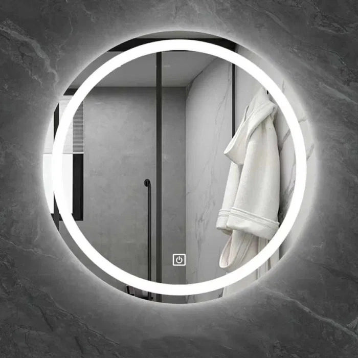 Elegante ronde spiegel met een diameter van 80 cm, voorzien van een LED-lichtkring en touchbediening, die een moderne stijl en praktische verlichting biedt voor badkamer, slaapkamer of inloopkast. Met traploos dimmen, energiezuinige werking en vochtbestendigheid – ideaal voor make-up, scheren en dagelijkse verzorging.