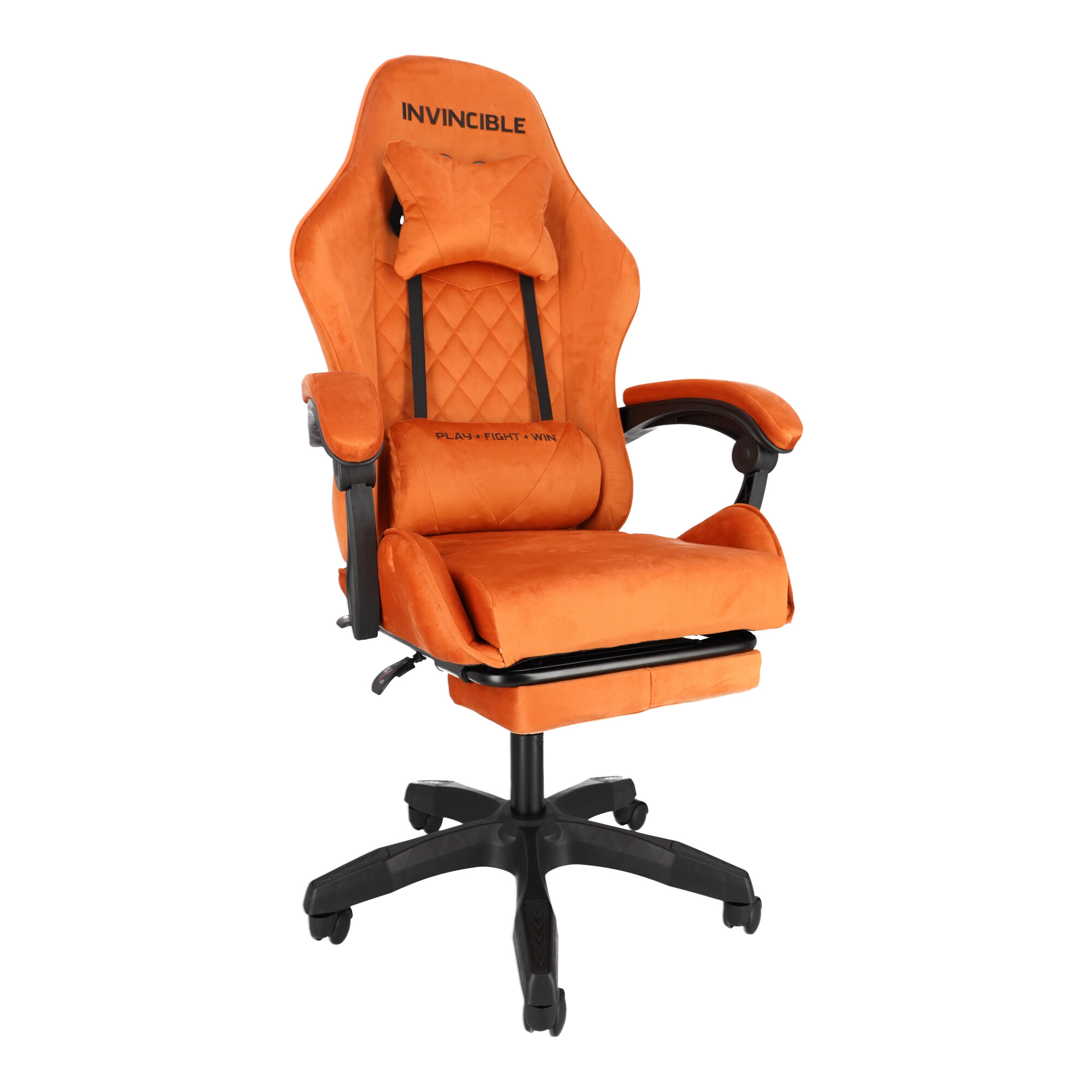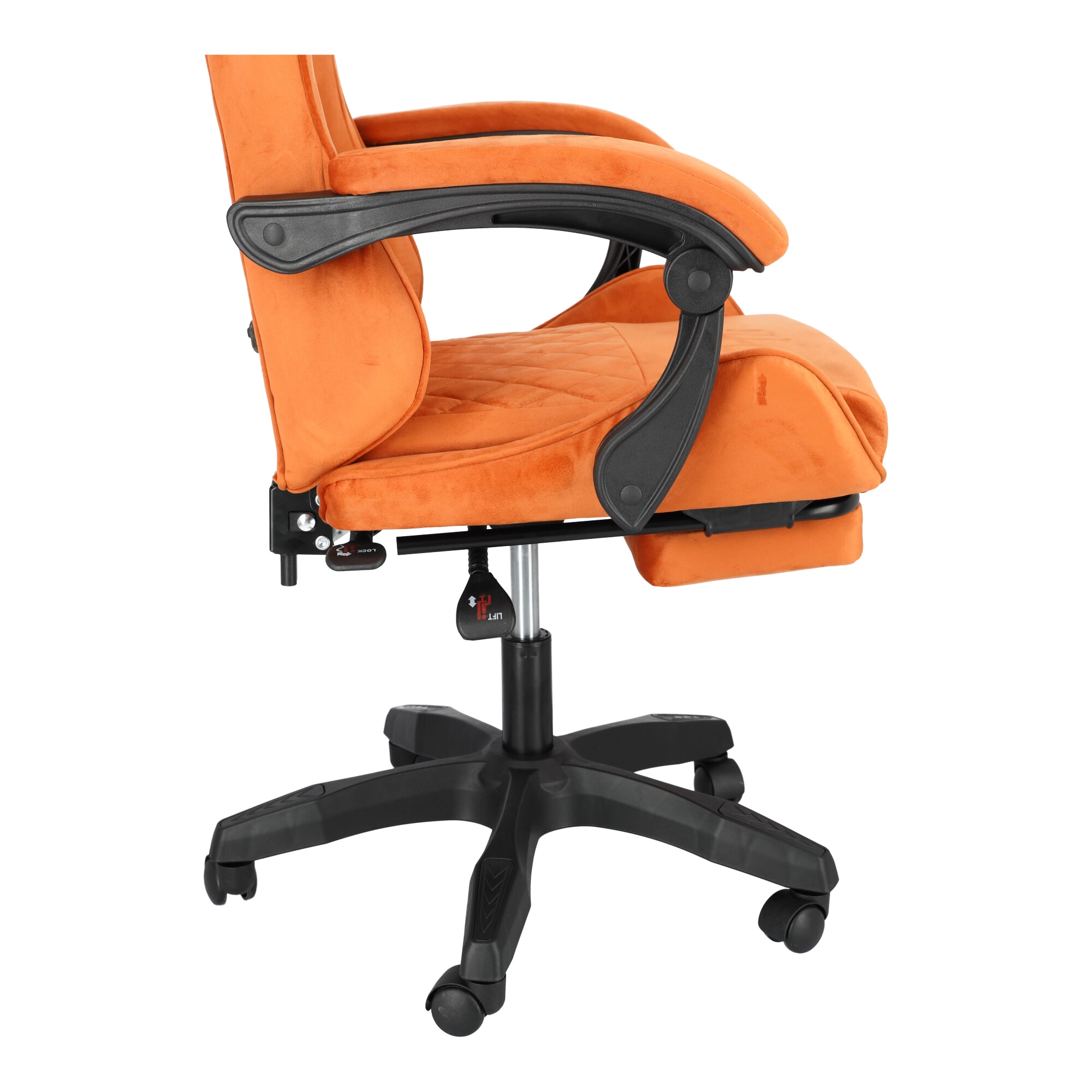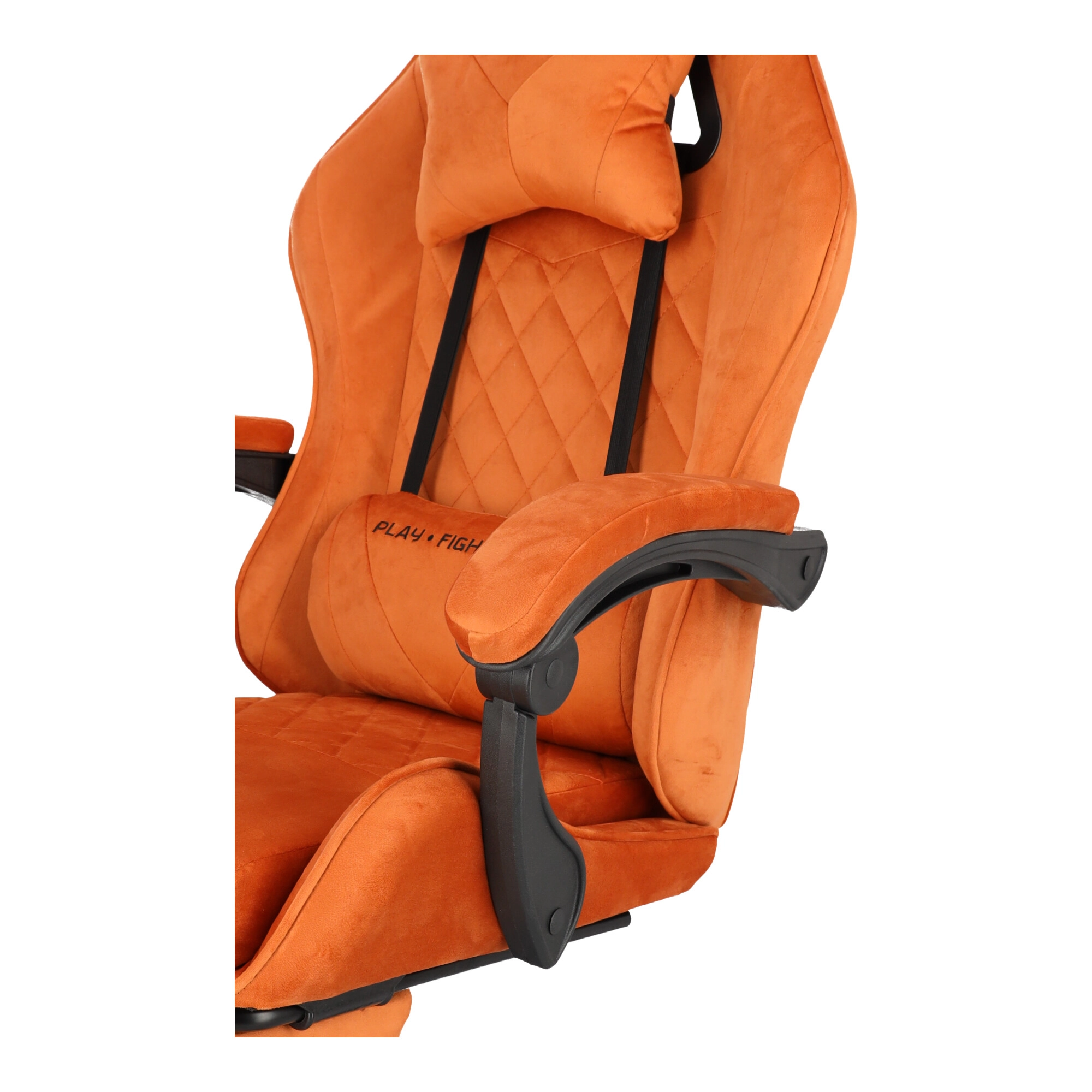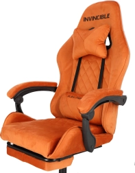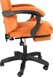 Geniet van het comfort en de ondersteuning die je nodig hebt voor lange gamemarathons en werkdagen. De stoel blinkt uit met zachte veloursbekleding in een warme bruine tint, een ergonomisch gevormde rug en een kuipprofiel voor betere stabilisatie van het lichaam. De geïntegreerde uitklapbare voetsteun en rugleuning kantelbaar tot 145° laten je in enkele seconden schakelen van prestatie naar ontspanning.