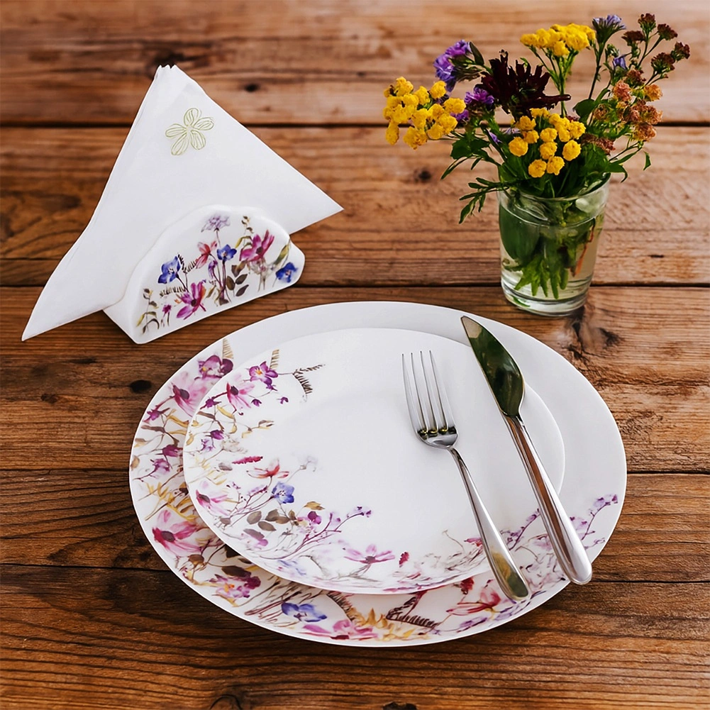 - Stijlvol design: zuiver wit met weidebloemenmotief