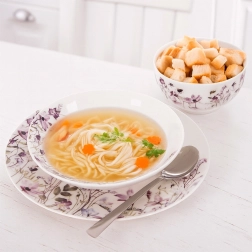 Het bord is gemaakt van hoogwaardig porselein, dat duurzaam en praktisch is voor dagelijks gebruik. Je kunt het zonder zorgen in de vaatwasser doen en gerechten erop opwarmen in de magnetron. De klassieke vorm en het universele design zijn gemakkelijk te combineren met andere stukken uit de Louka-serie en met neutrale sets.
