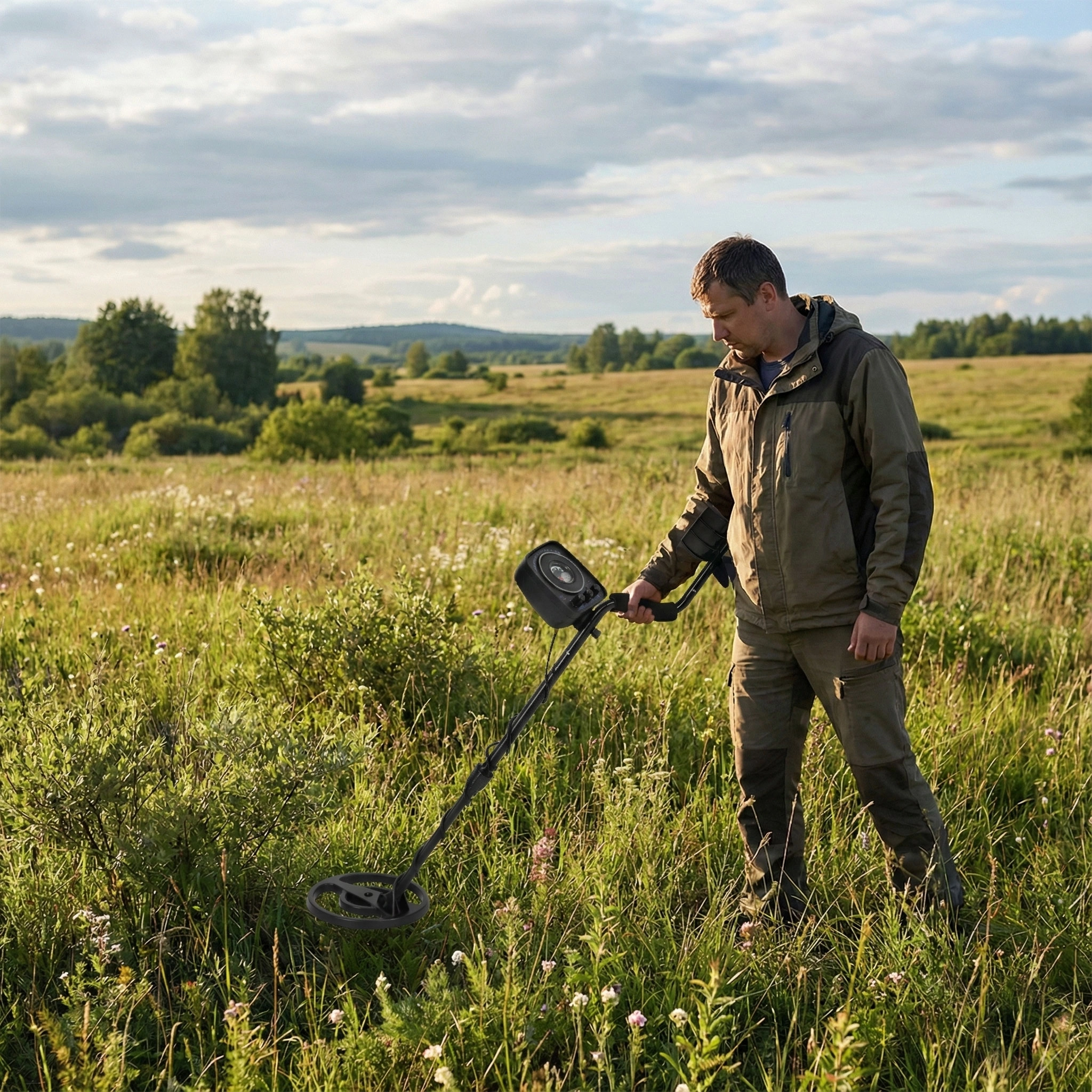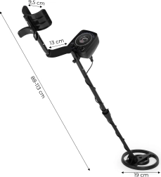 Het ergonomische ontwerp met een antislip foamhandgreep en een verstelbare steel zorgt voor comfortabel zwaaien over het terrein. De waterdichte spoel met een diameter van 19 cm kan overweg met nat gras, vochtig zand en ondiep water, terwijl akoestische signalen en een analoge wijzer het nauwkeurig lokaliseren van de vondst vergemakkelijken.