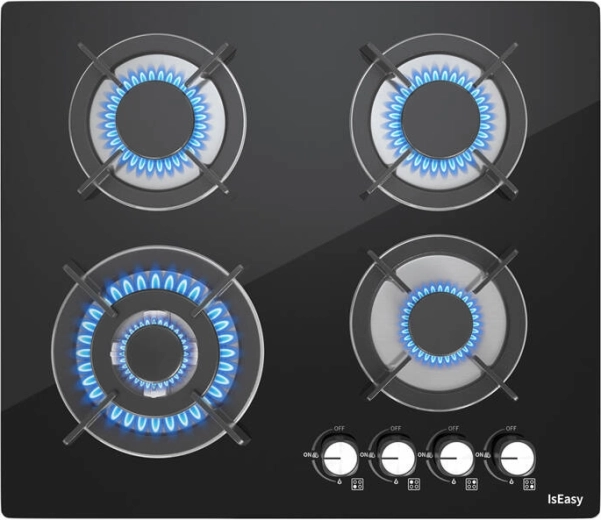 Iseasy gas kookplaat met glazen oppervlak, 4 branders