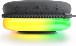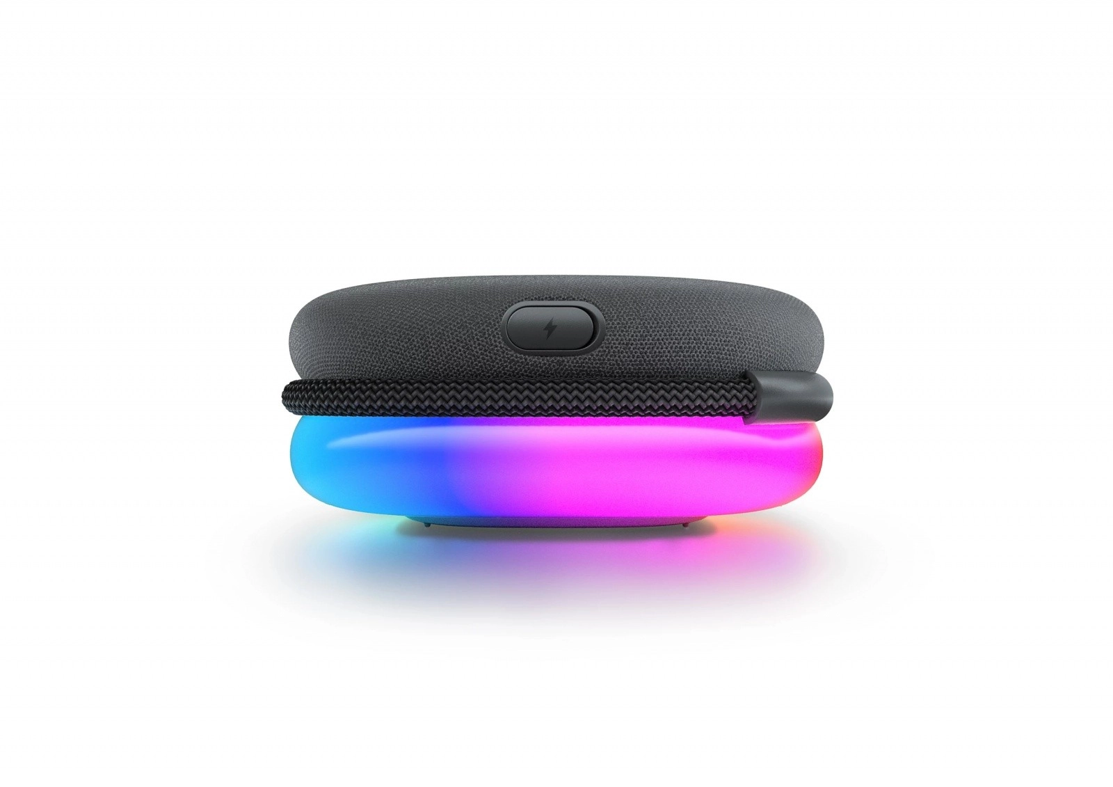 Compacte draadloze luidspreker met textielafwerking en RGB-verlichting die elke ruimte in een muzikale scène verandert. Geniet van krachtige bassen dankzij de passieve radiator, tot 7 uur afspelen, Bluetooth-streaming vanaf je telefoon en 3 verlichtingsmodi van partykleuren tot zacht nachtlampje. Een handig polsriempje maakt meenemen eenvoudig.
